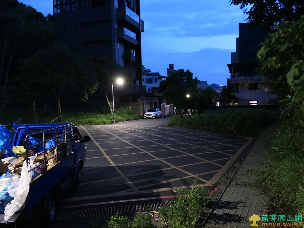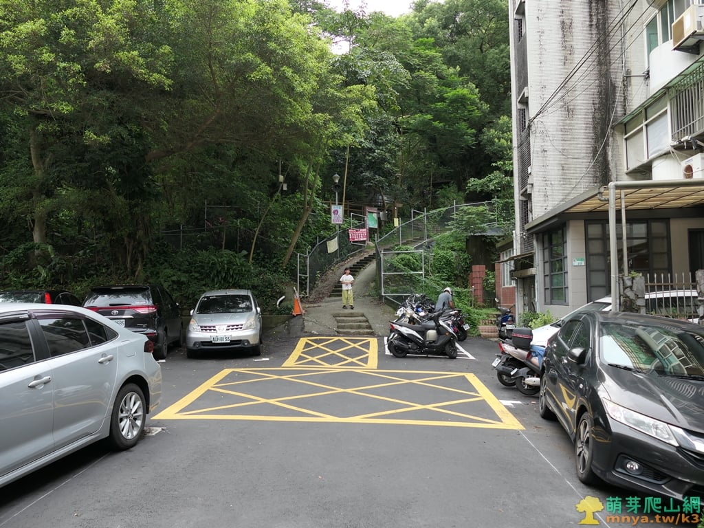 ▲出環山路二段68巷路底空地,路底空地劃設網狀線不能停車,此行連登論劍山、剪刀石山、金面山,從環山路一段136巷上山再由環山路二段68巷下山,總費時2小時21分鐘,是內湖周邊熱門的郊山,全程指標清楚路況良好,來往山友絡繹不絕。