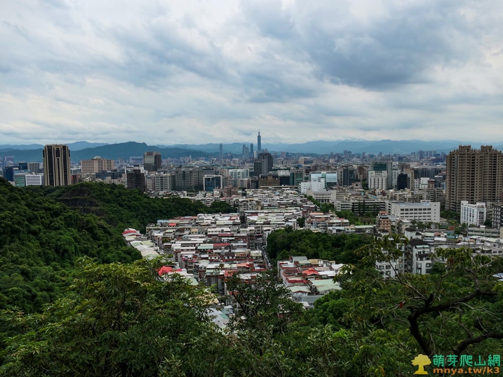 ▲往南眺望台北101大樓的方向,山下即來時的環山路一段136巷周邊社區,遠眺石碇、新店、三峽等山區。