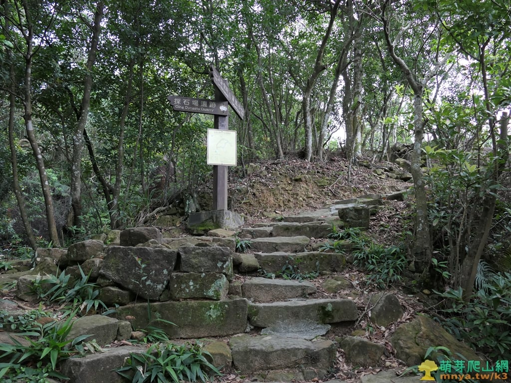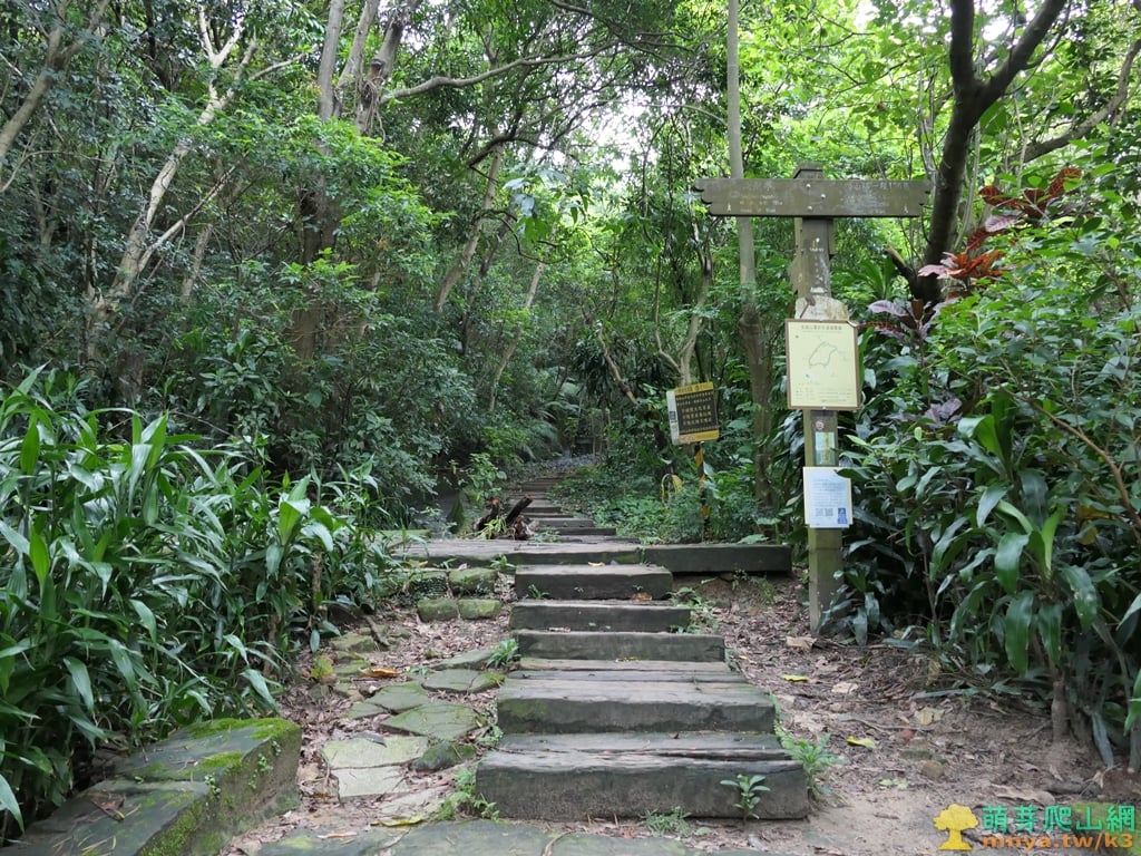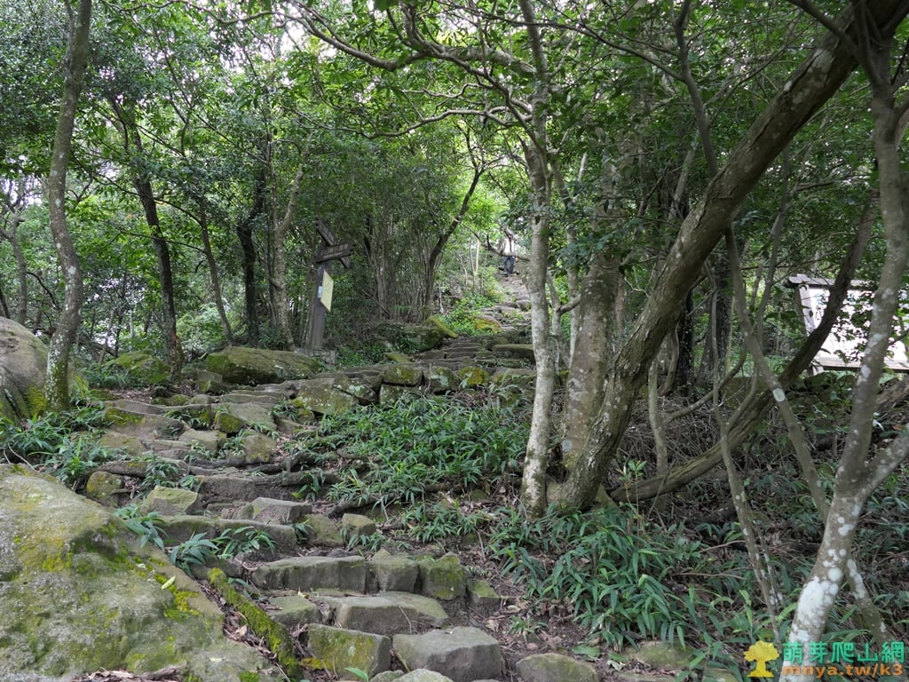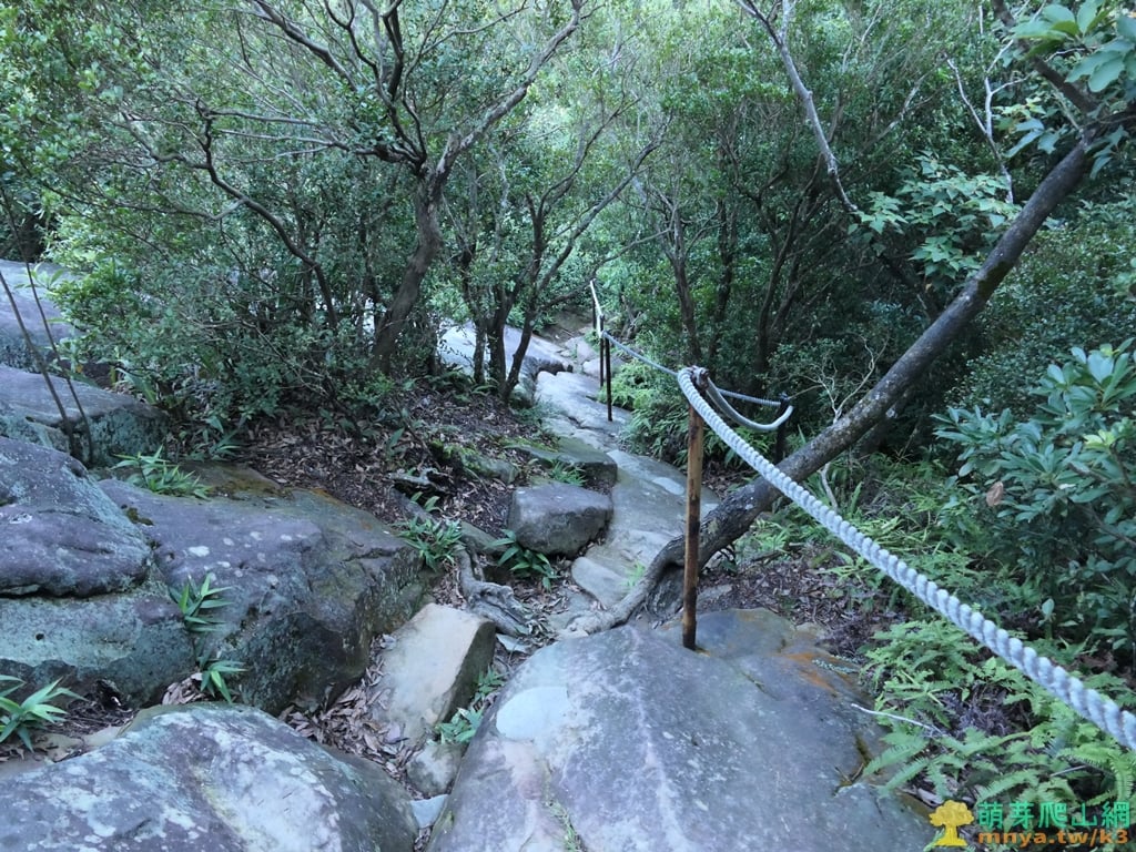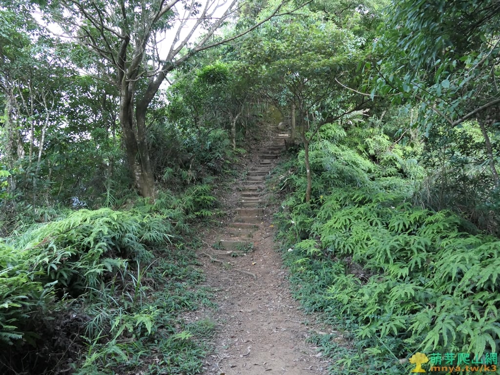 ▲順著石階步道沿山坡陡上,採石場路線要一路爬坡直上剪刀石山,爬升超過兩百公尺。