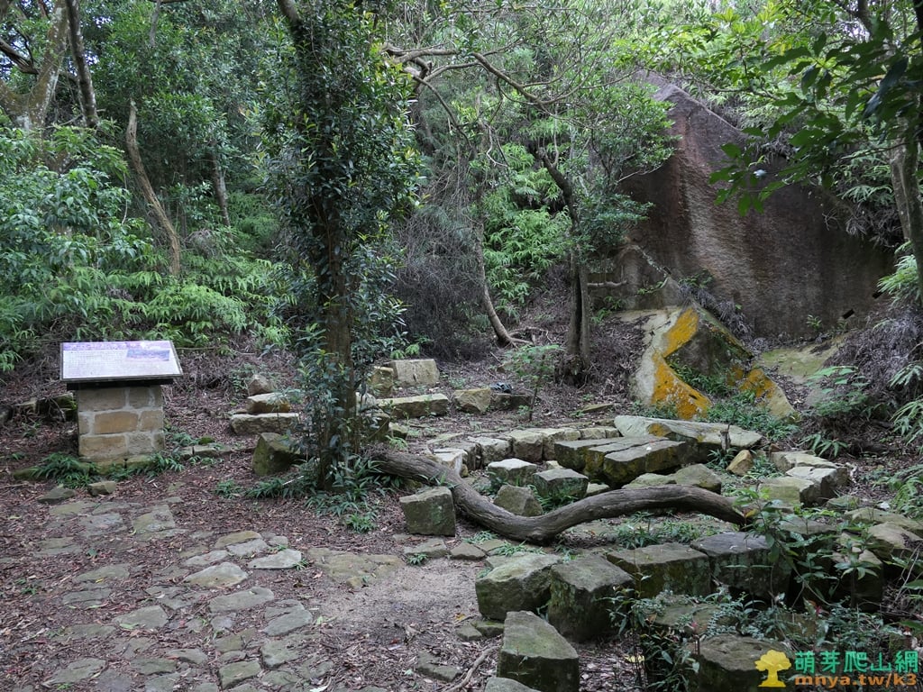 ▲16:50,至採石場遺址岔路,採石場遺址就在路左10公尺,續行指標直上往論劍亭490M、29分;回往環山路一段136巷250M、10分。