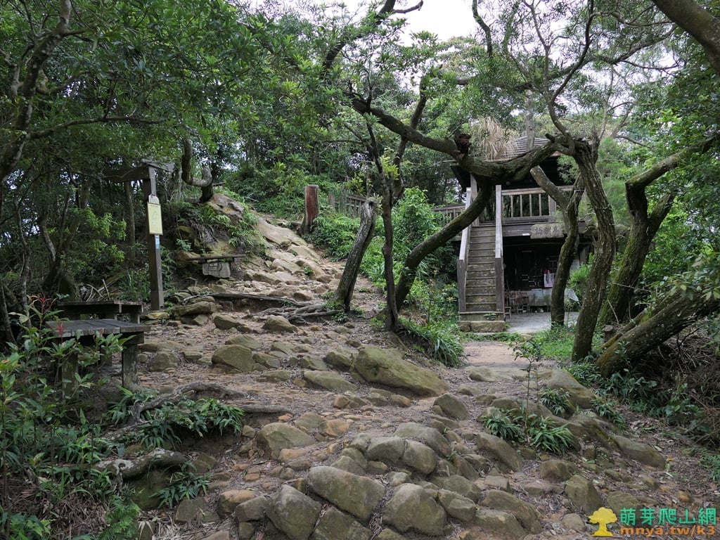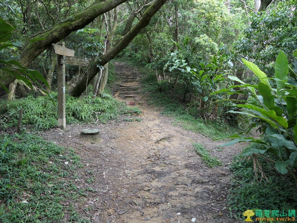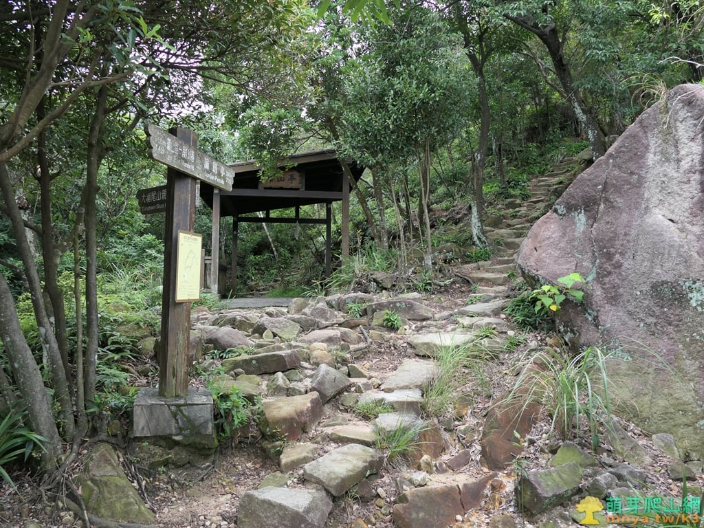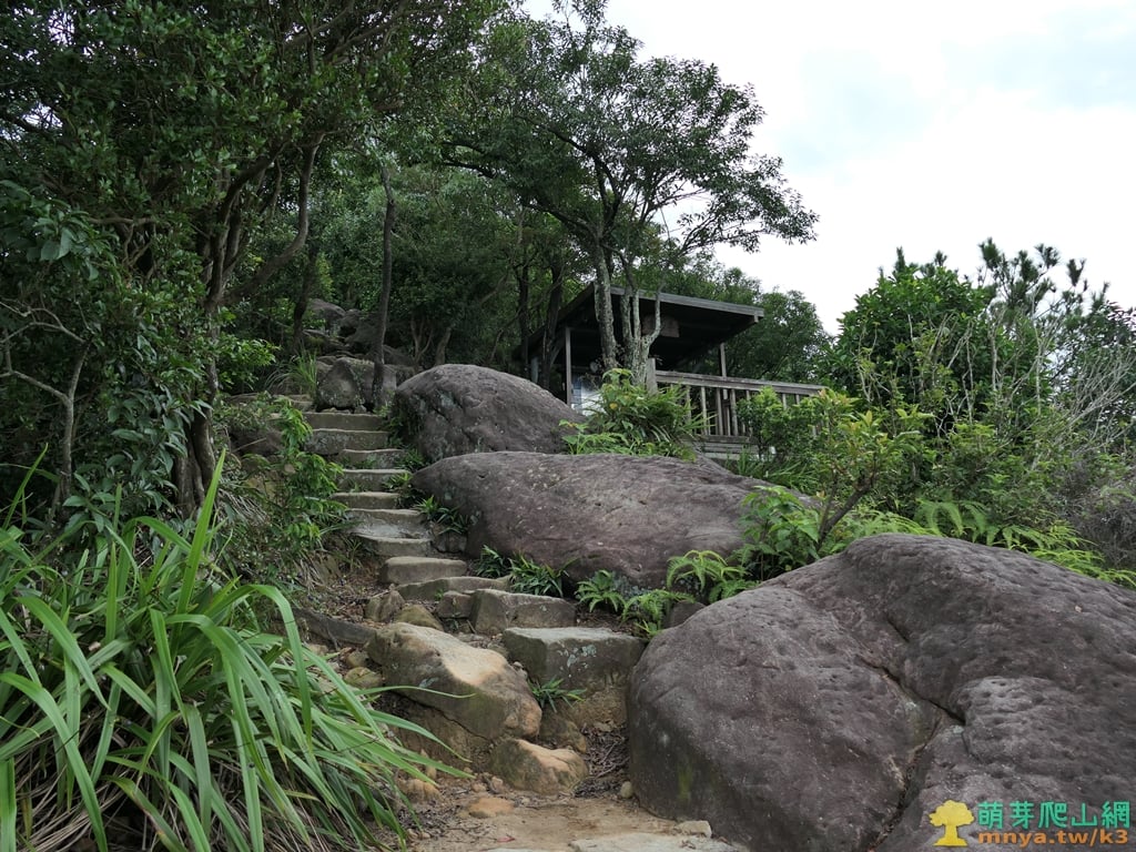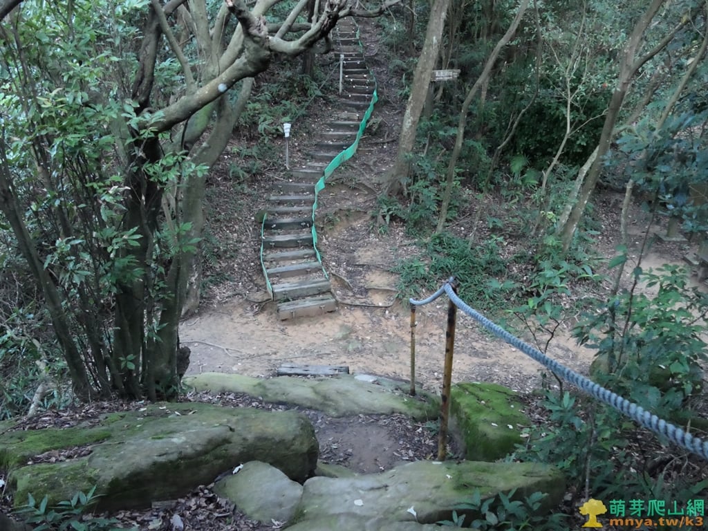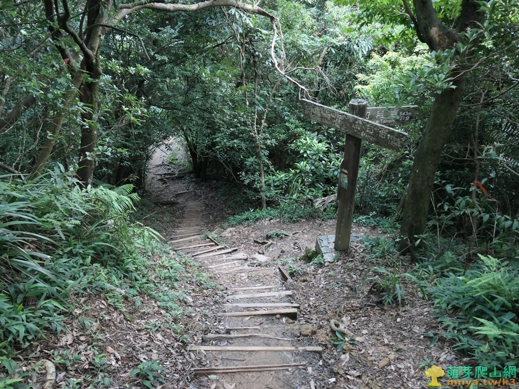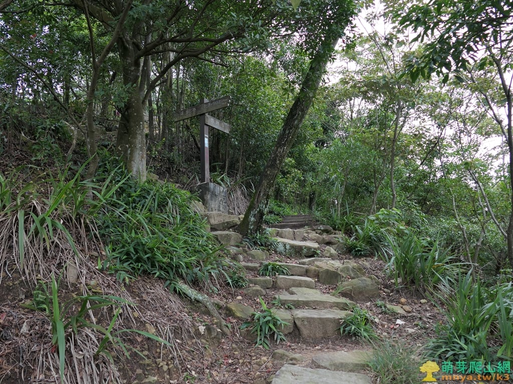 ▲石階步道向下遇分岔取右下,左側小徑可接回論劍亭。