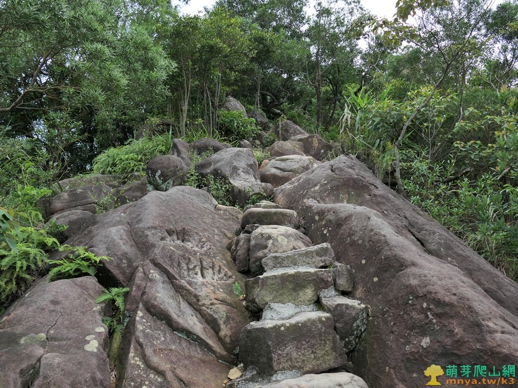 ▲接著往上轉為岩石地形,由一階階石塊拼成步道。
