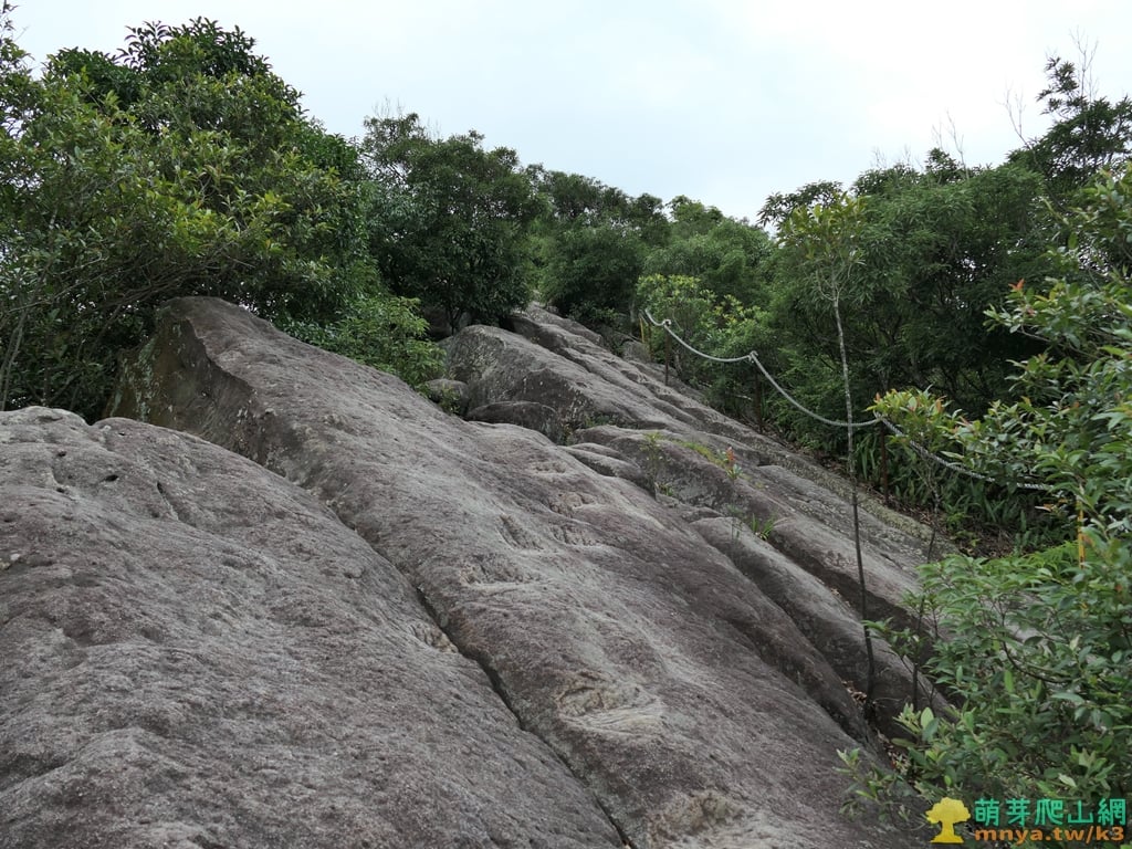 ▲繼續順岩石稜線向上,算是入門級的岩場路,踏點明顯路徑清楚。