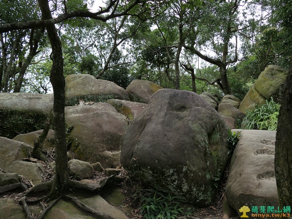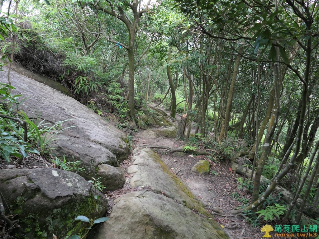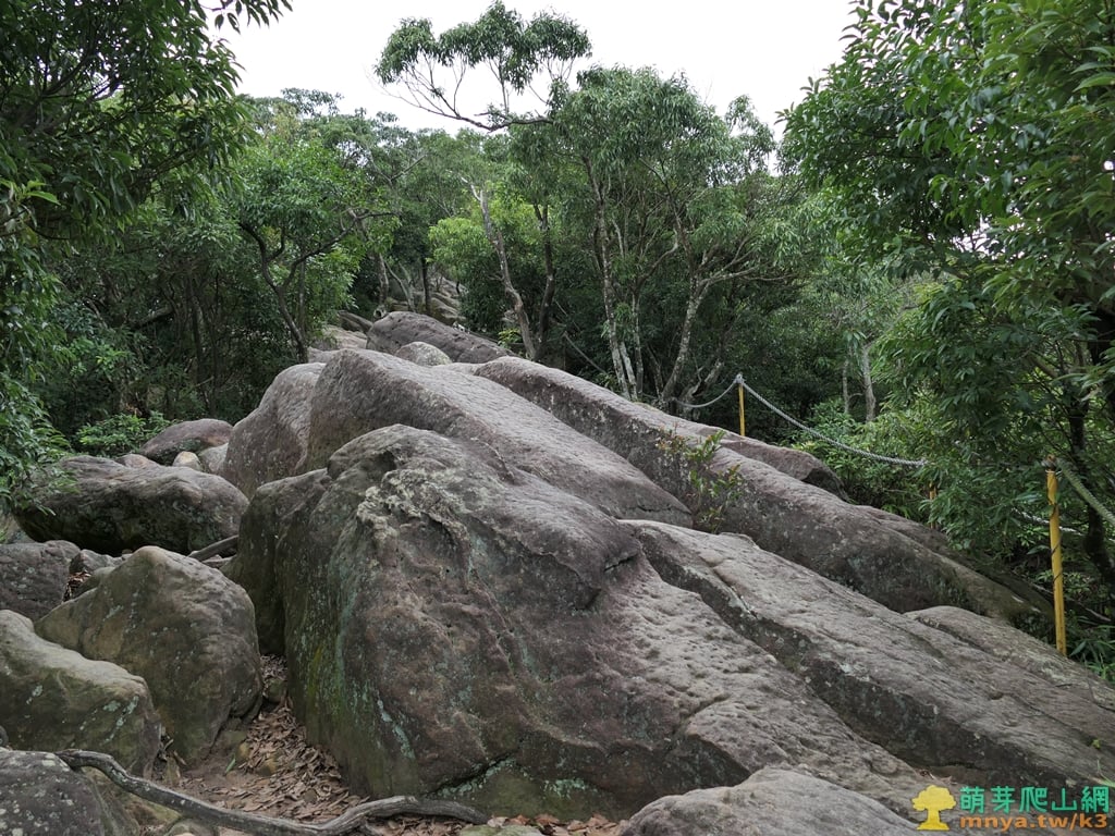 ▲繼續直上稜線岩石步道,岩場地形是金面山附近的特色。