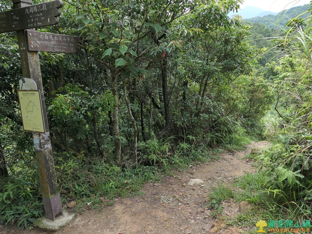 ▲17:47,回到剪刀石山前的稜線岔路,取直往剪刀石山,路口指標直往內湖路三段1.6KM、約50分鐘;右下往環山路一段136巷750M、約30分鐘、回往大崙尾山親山步道3.0KM、約90分鐘。