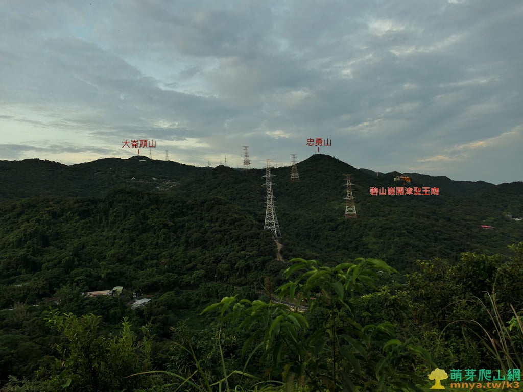 ▲眺望大崙頭山(472M)與碧山巖開漳聖王廟、忠勇山(327M),天色漸漸暗下。