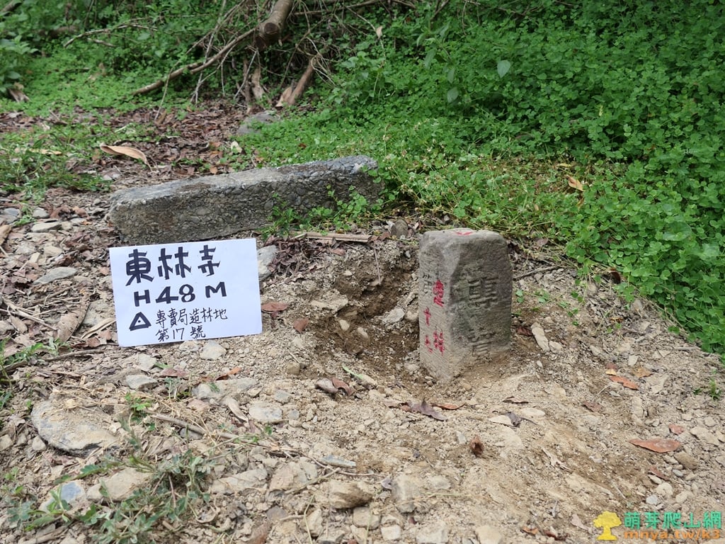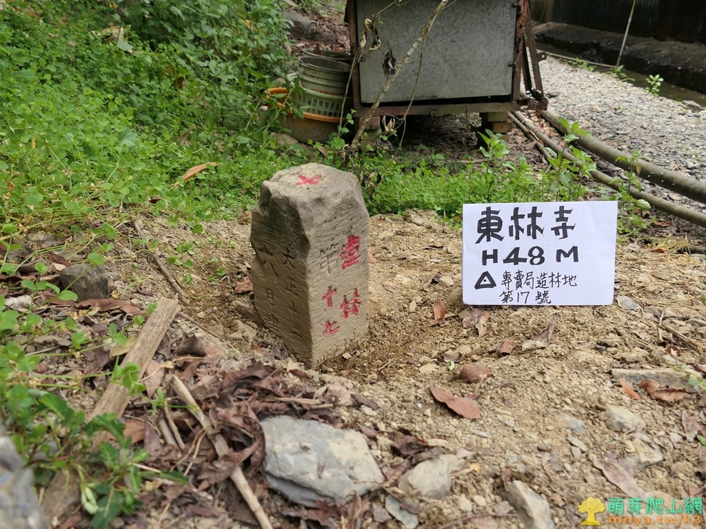 ▲東林寺 標高48公尺 大正十二年六月建設專賣局造林地第十七號 座標:326714, 2724159;24.6204362 121.7658619