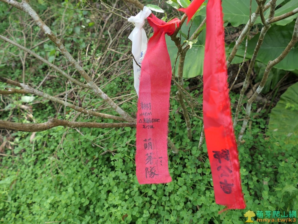 ▲布條標示,此點為最近山友anderw與阿吉新找到的,標誌牌上高度是寫50公尺。