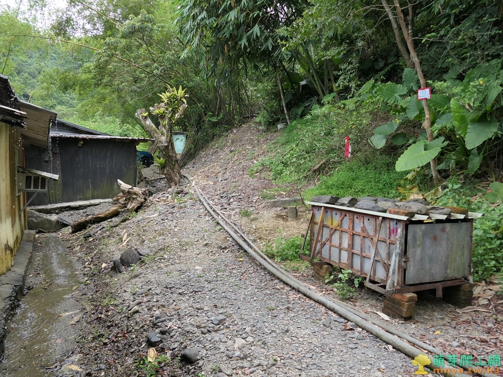 ▲車行至寶和路柏油路底轉土石路處(電桿路標編號71311),基石點位就在右側民宅寶和路670號後方。
