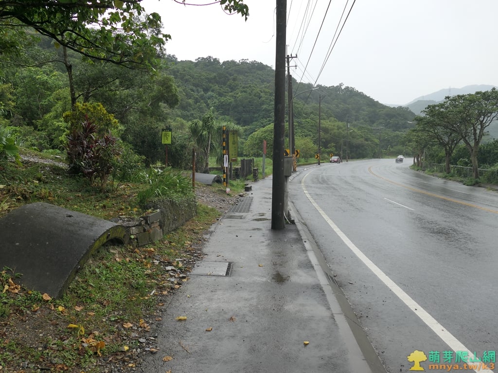 ▲15:26,七星嶺健走步道入口位於台2戊線9.4K(電桿馬賽17),登山口高約20公尺,直距龍頂山(蘇澳山)約0.63K。