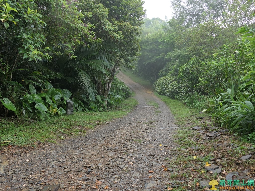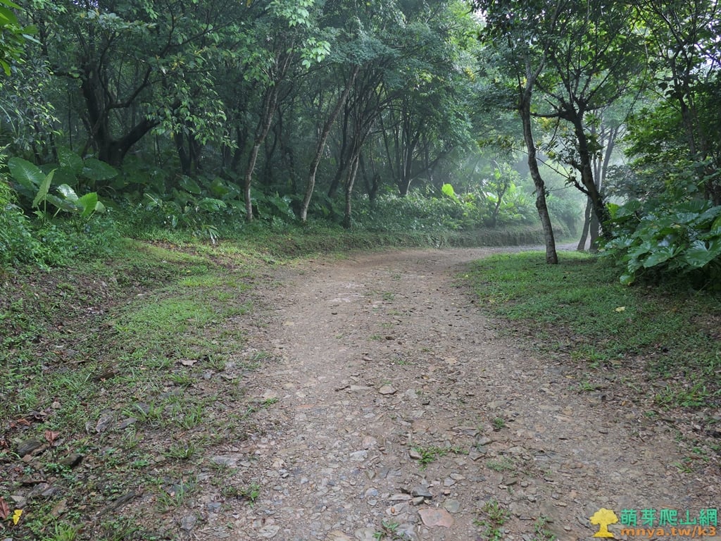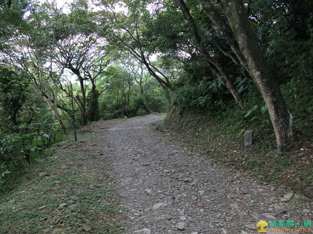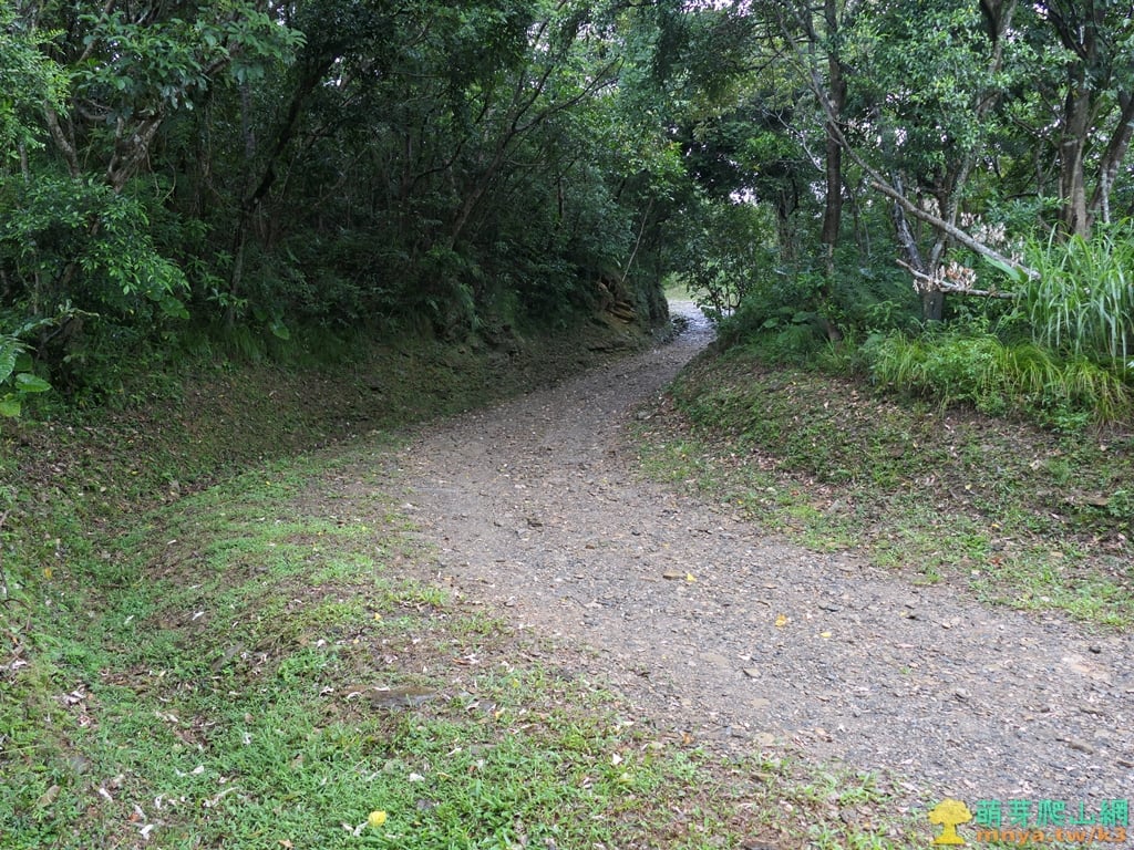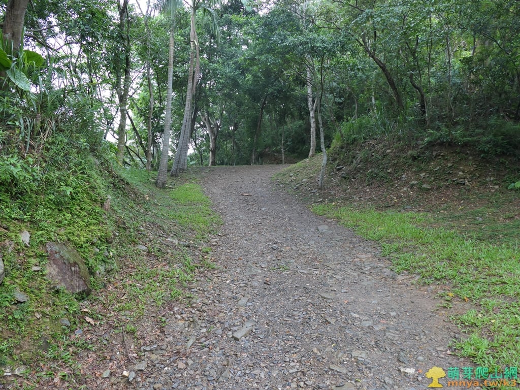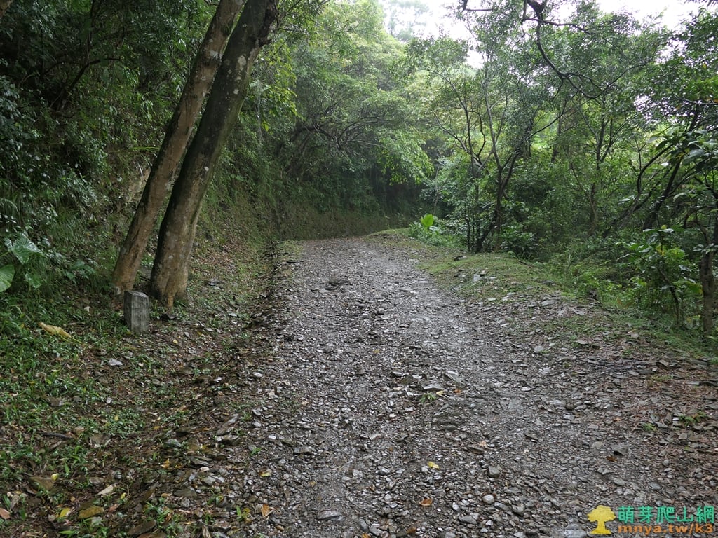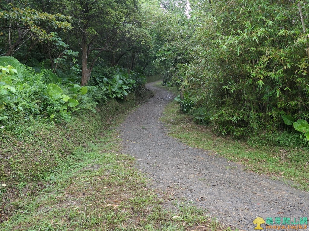 ▲順著寬稜左側的土石路步道緩上,全程步面平坦好走。