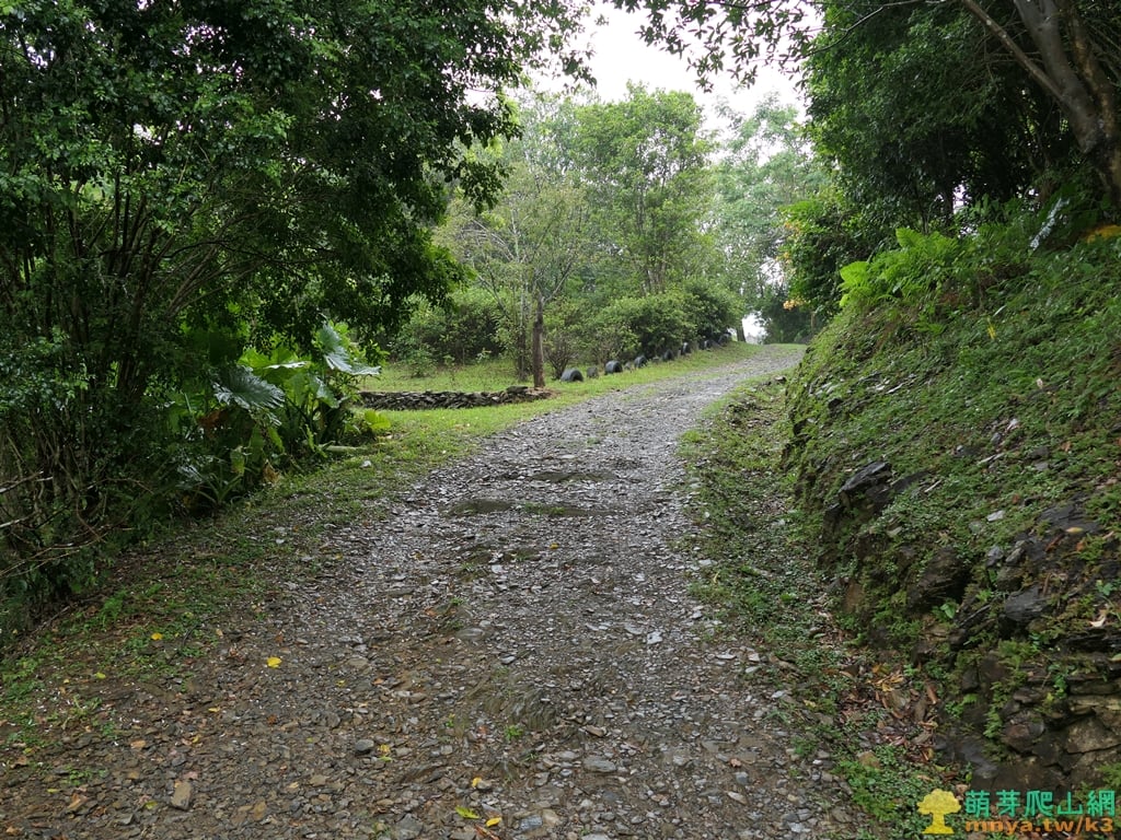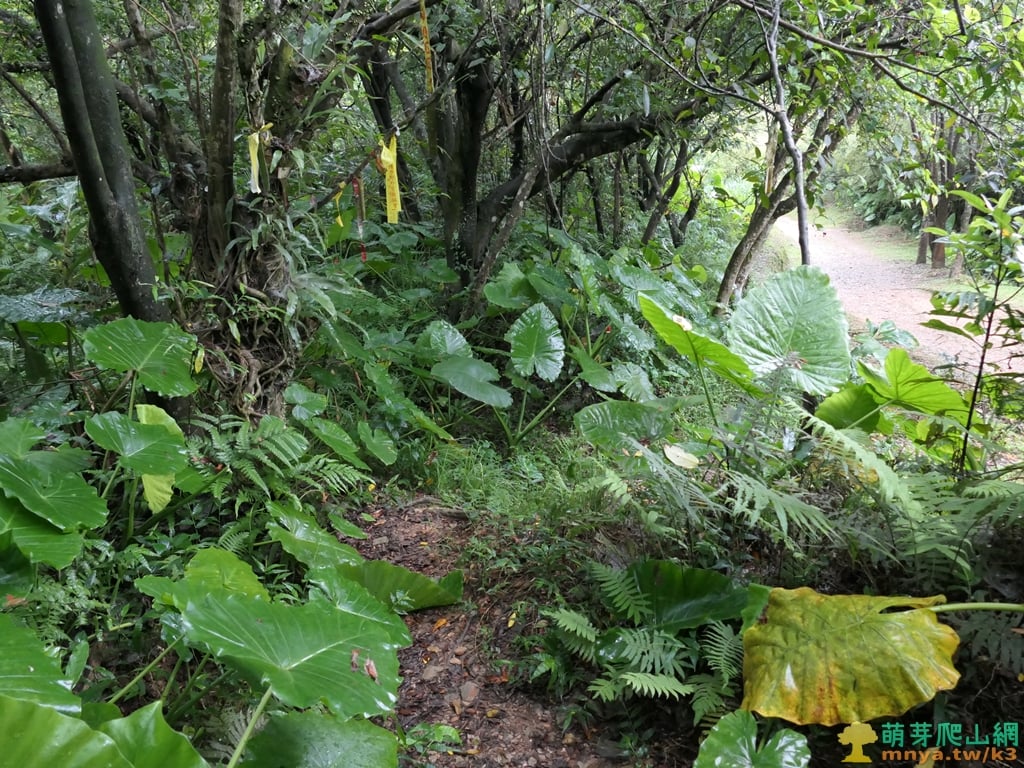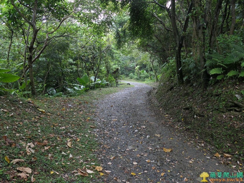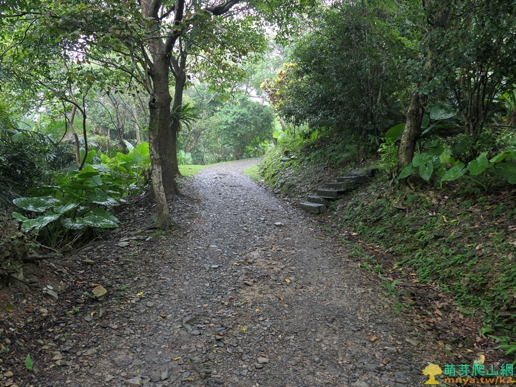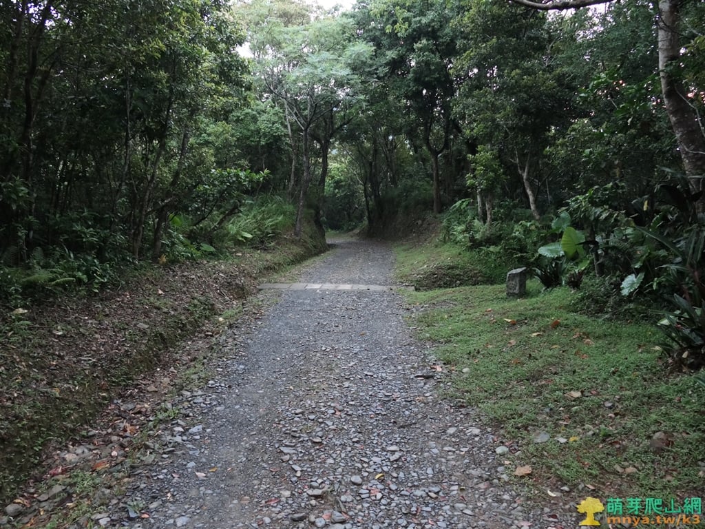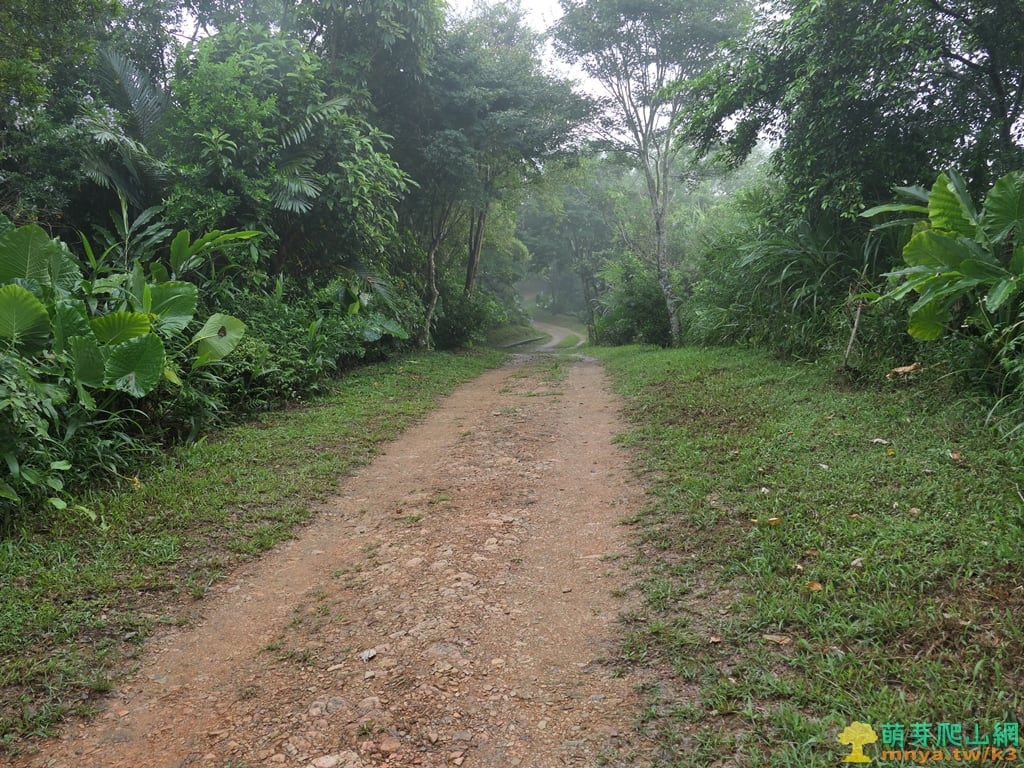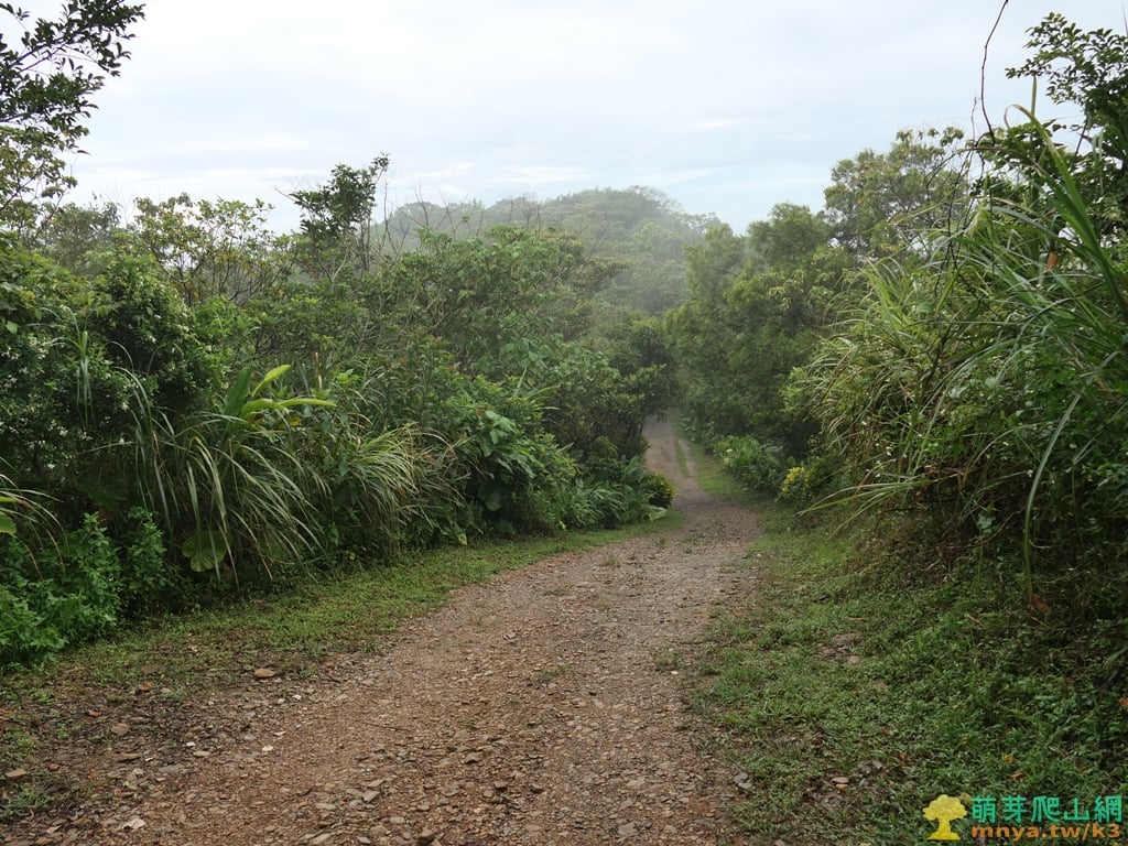 ▲順著寬稜左側的土石路步道緩上,全程步面平坦好走。
