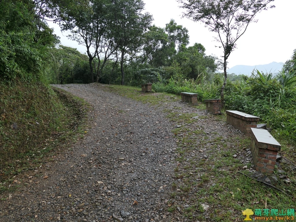 ▲第四處大彎後再往上不久接上稜線,左彎後有一處空地,續行土石路步道沿寬稜邊轉緩上坡。