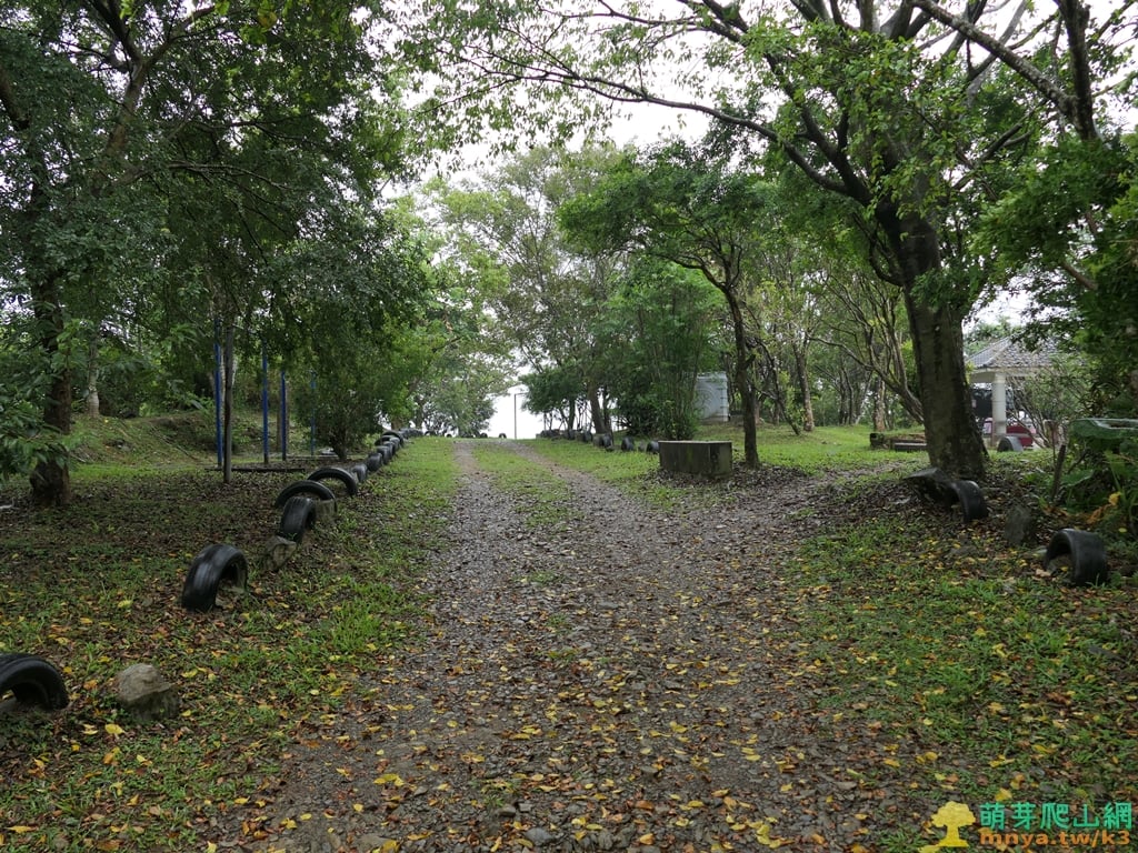 ▲再往上至山頭範圍就開始有公園的感覺了,左側有一處棚子停著一台農機,前方指標續行往星嶺公園(至高點);回往聖愛路(登山口)。