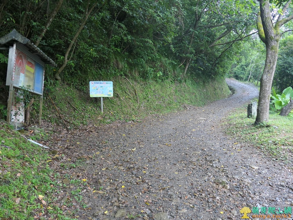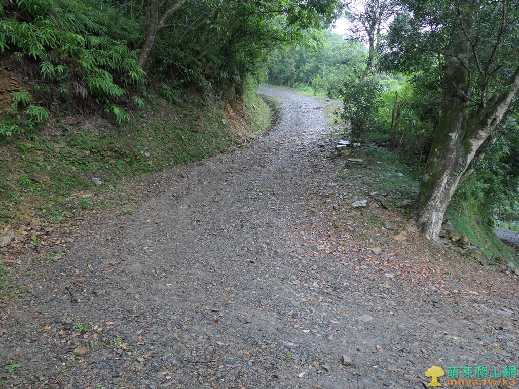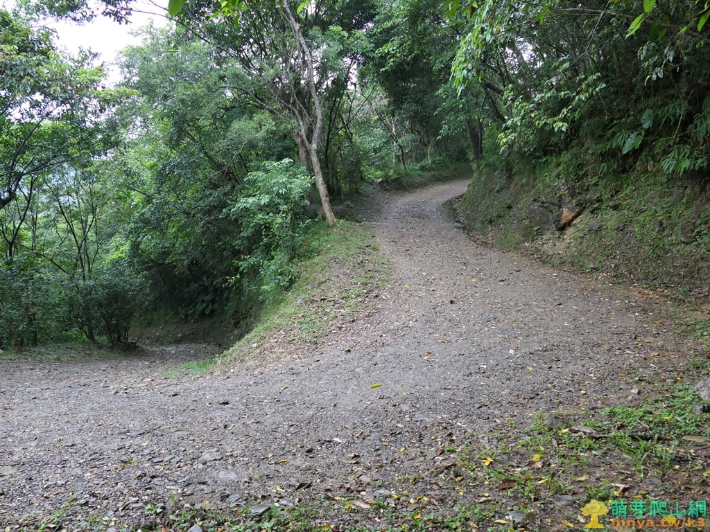 ▲土石路彎道向右,回往好漢坡岔路。