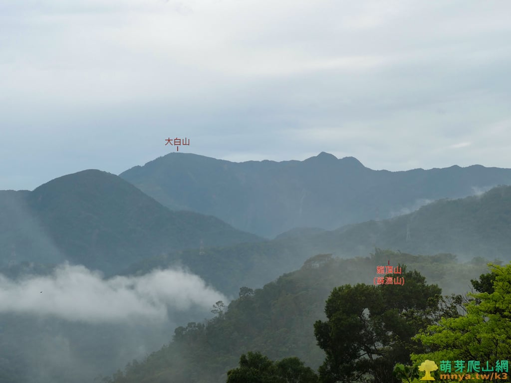▲往西拉近前方可見龍頂山(蘇澳山;244M),後方最高的山峰為大白山(1369M),登山口要從安平坑林道進入。