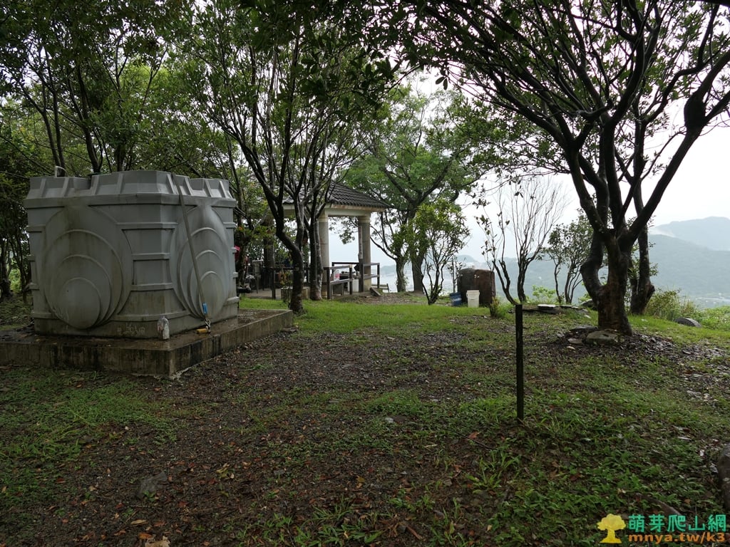 ▲星嶺公園的蓄水桶與涼亭,於公園看風景休息待了約40分鐘才離開。17:08,原路回往好漢坡上來之稜線岔路,準備去往目的地龍頂山(蘇澳山;244M),離開時雨終於停下了。