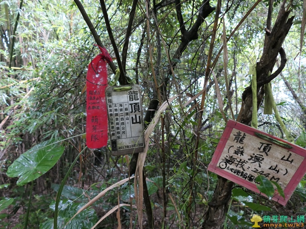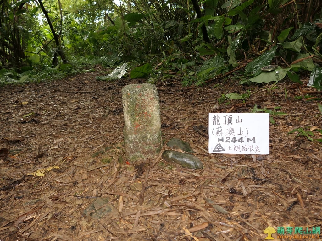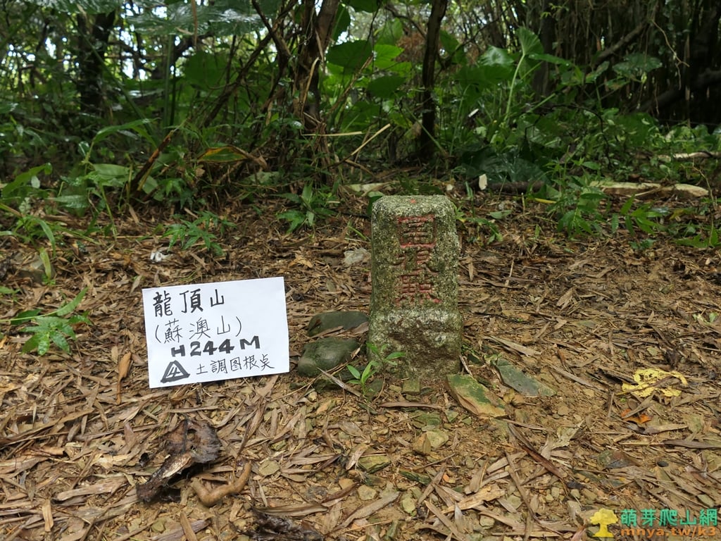 龍頂山(蘇澳山) 標高244公尺 土地調查局圖根點 座標:334615, 2722103;24.601461 121.8437644