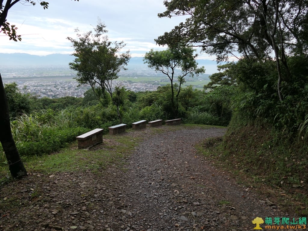 ▲前行好漢坡前右側休憩椅,右側有不錯的展望,是步道一路上來的第一處視野點。