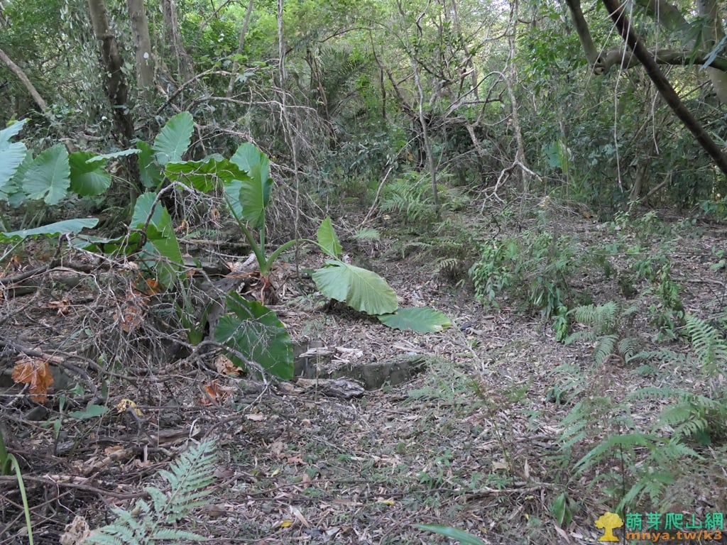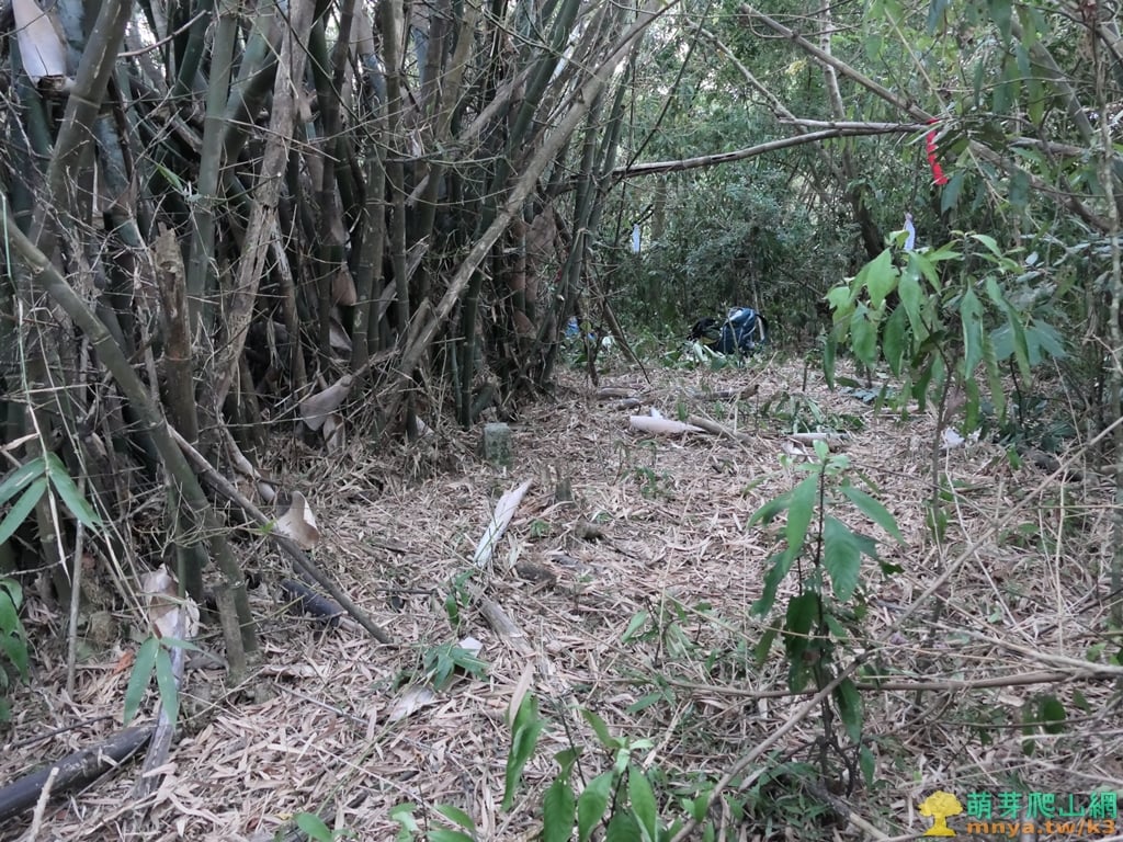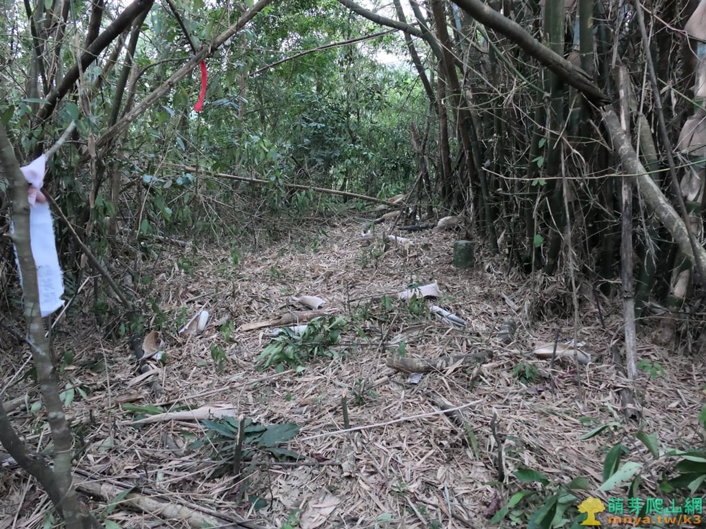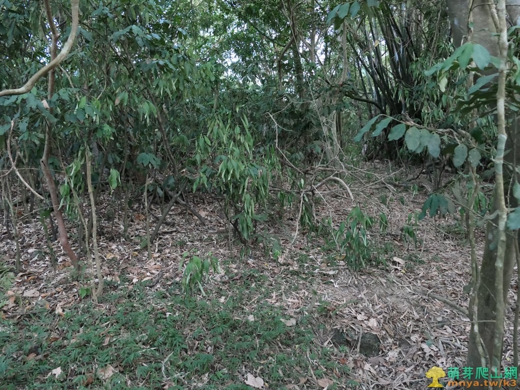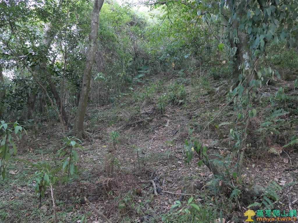 ▲順雜木林山坡上至一片寬敞平台地,接著朝左側行。