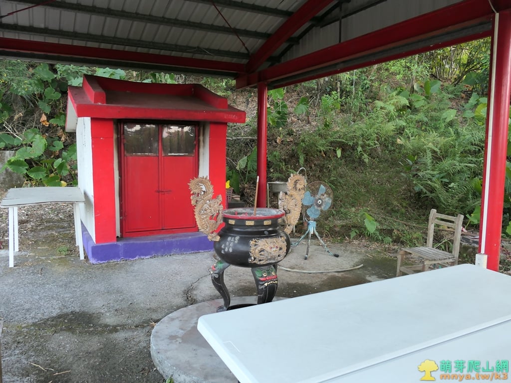▲原路走約4分鐘回福德祠,開闊處還有一點點日落的餘光,小廟旁還有洗水台可以洗一下手。