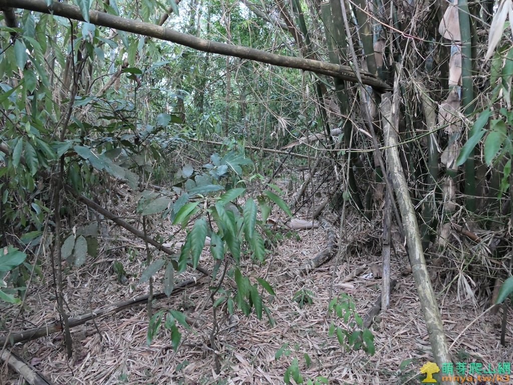 ▲繼續爬坡穿越一段雜木叢,至山頂周圍的緩坡,朝左前方最高處的竹叢行。