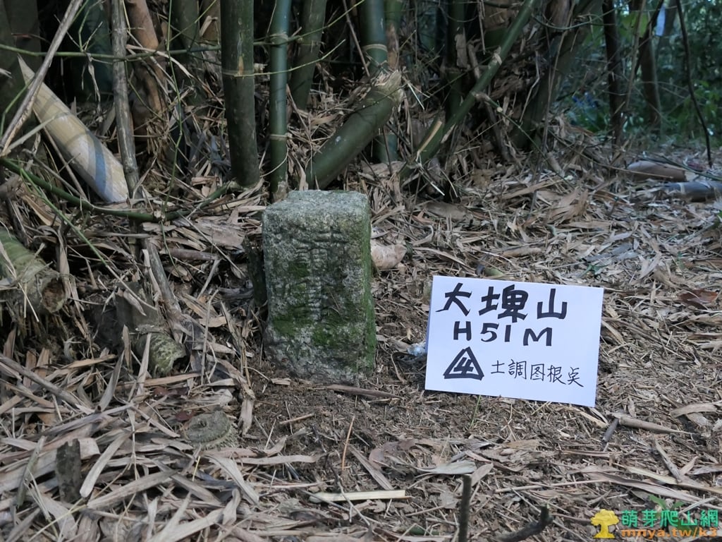 ▲大埤山 標高51公尺 土地調查局圖根點 座標:329258, 2724154;24.620263 121.7909837