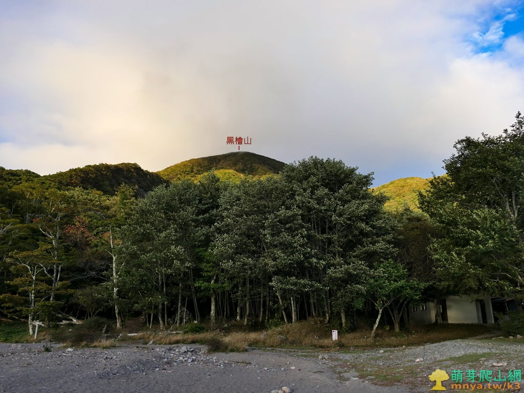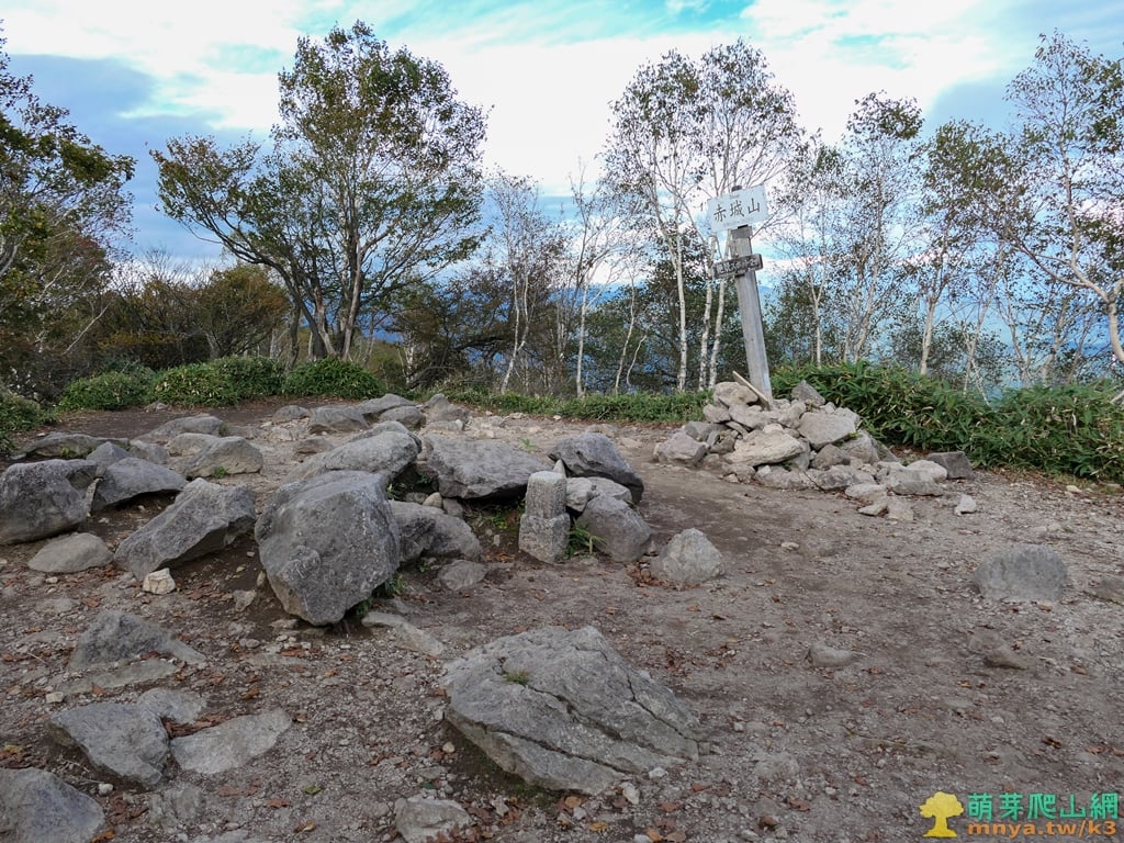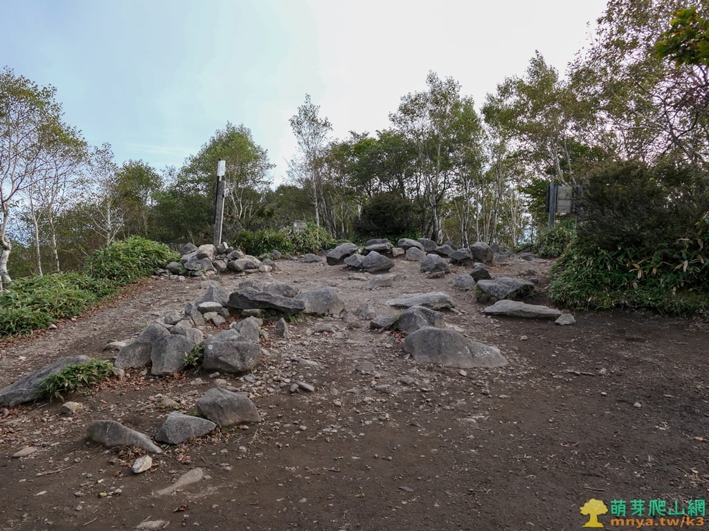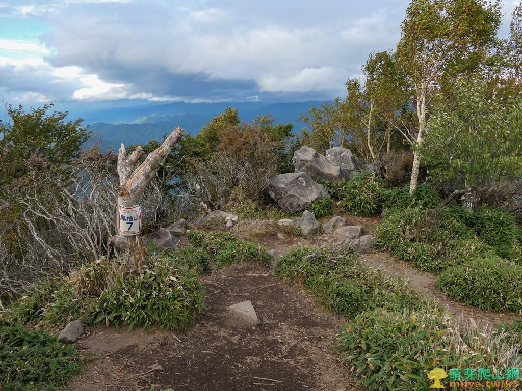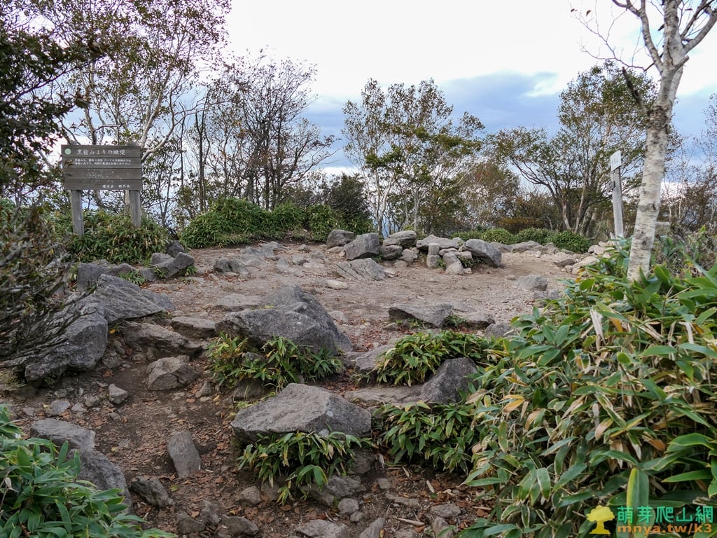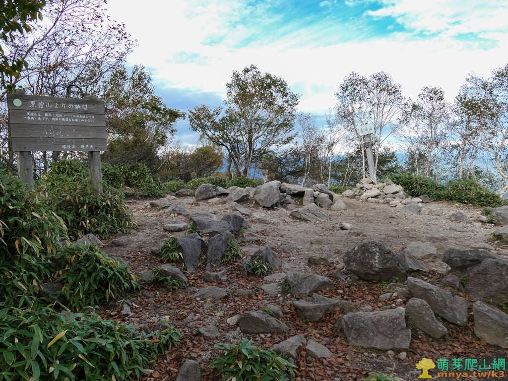 ▲山頂全景,一旁有面「黒檜山よりの眺望」木牌,可見其標示著赤城山最高峰周圍的群山,黒檜山沿途有不少展望點,但山頂樹林多反而沒有什麼風景。