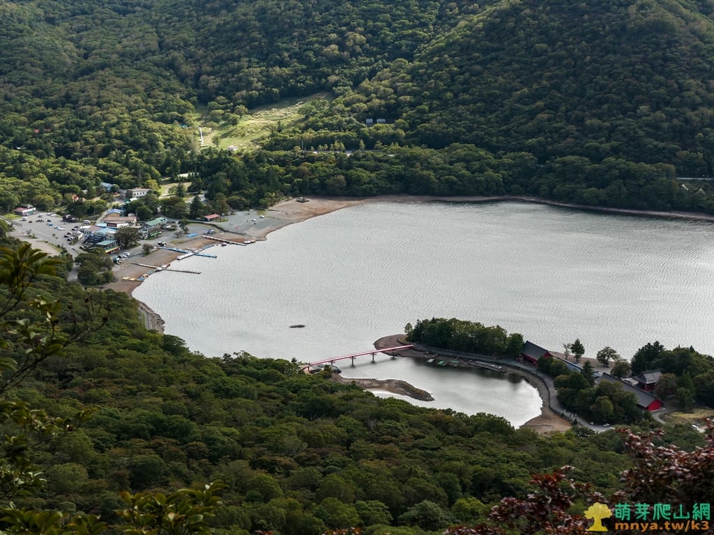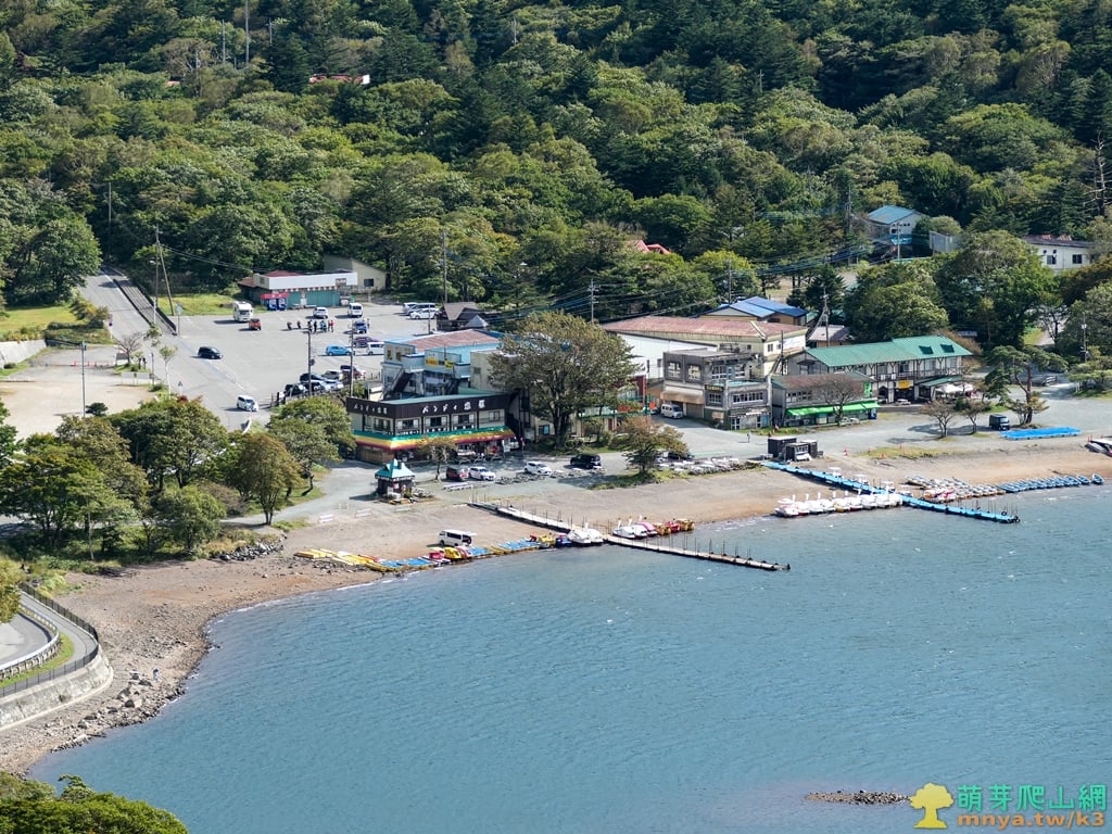 ▲拉近看大沼湖南岸的おのこ駐車場及周邊觀光地區,有一些餐廳與紀念品商店,是赤城山頂相對熱鬧的地方。