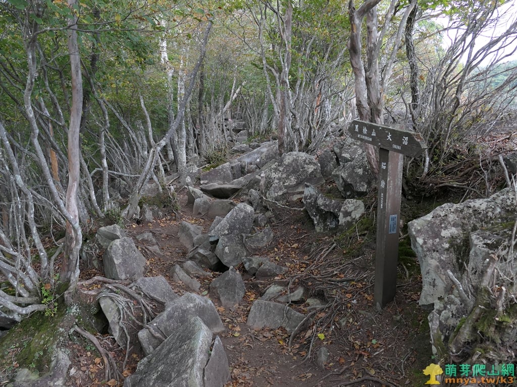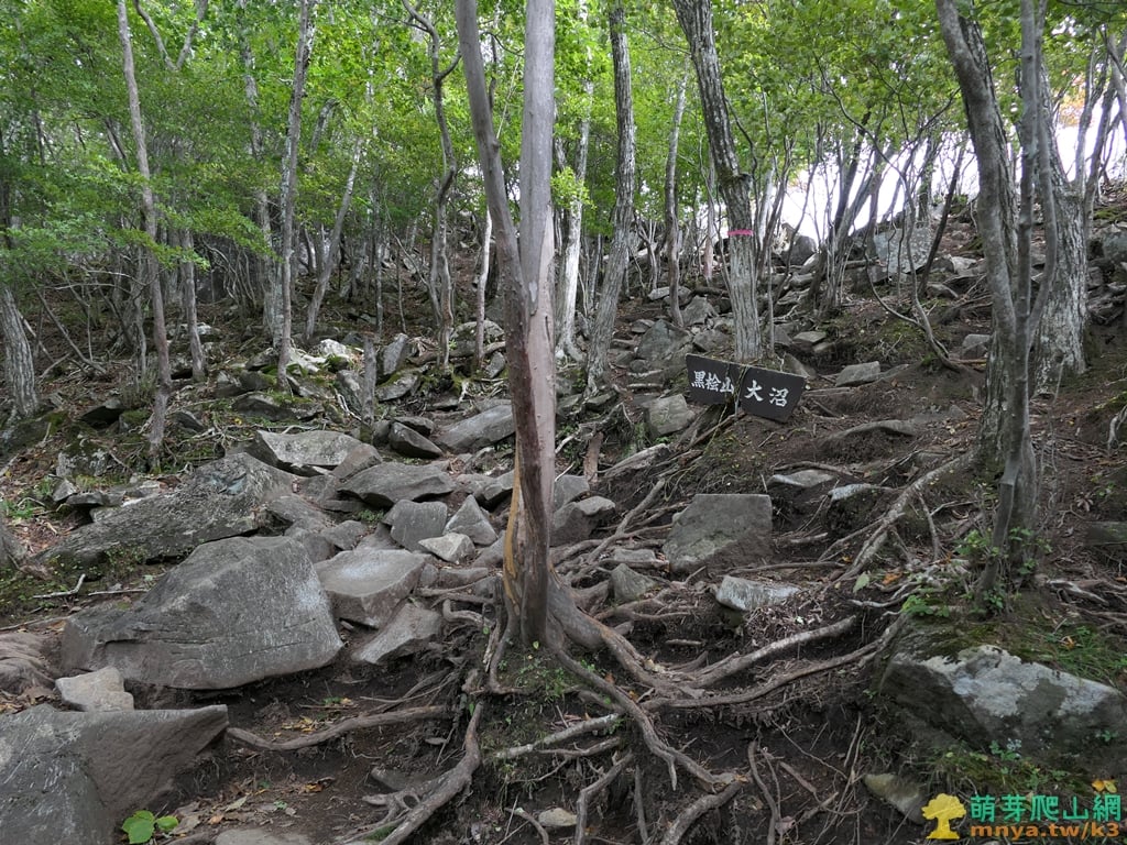▲急陡上往支稜之前,經一面往「黒桧山、大沼」的路牌。