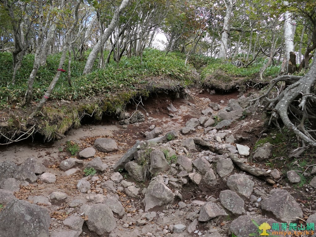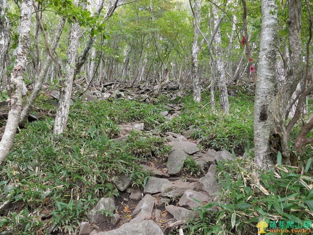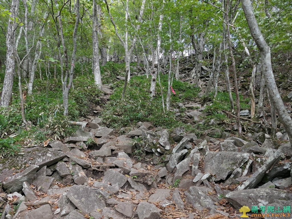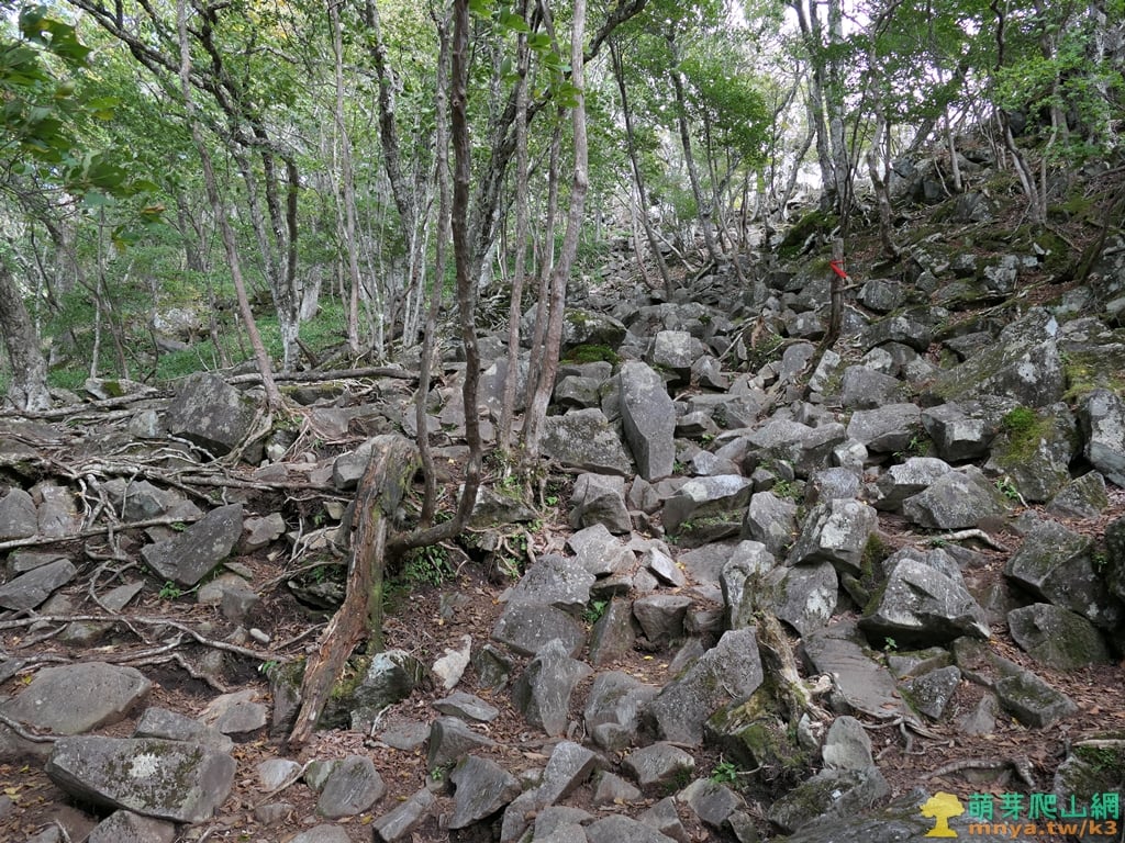 ▲開始最後一段又急又長的陡坡,路徑上仍滿地碎石塊。