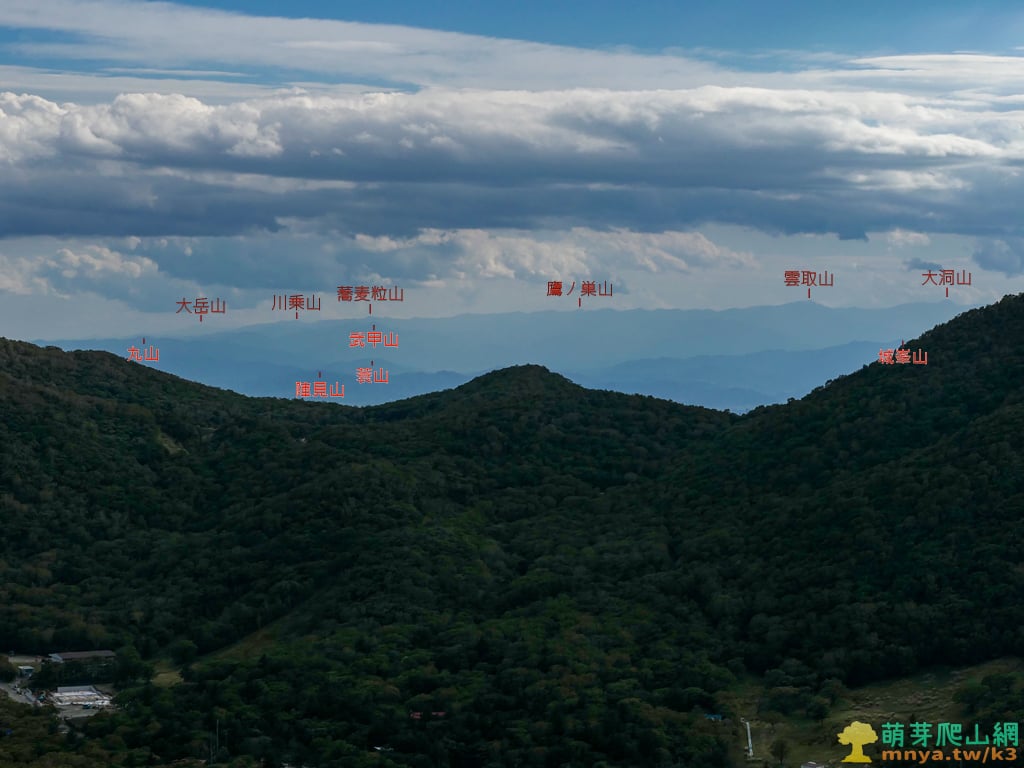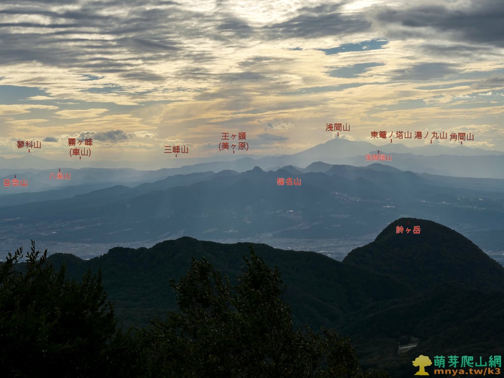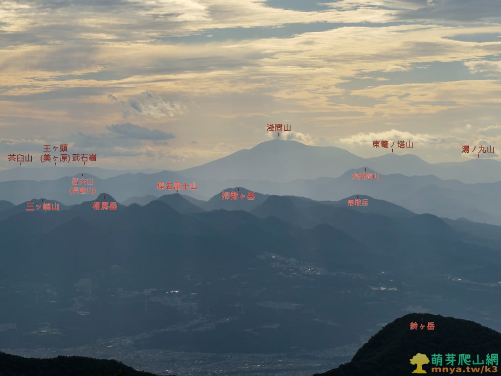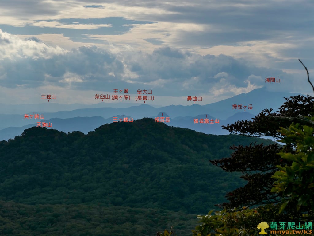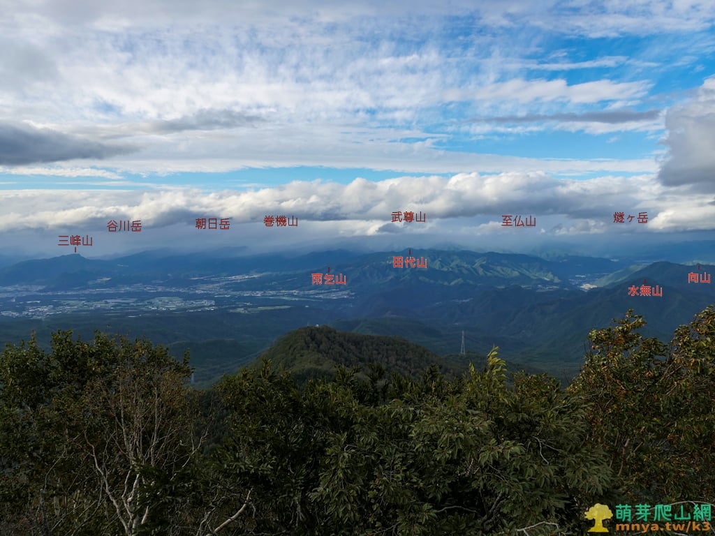 ▲往西南邊展望更好,可眺望赤城山第三高峰 - 地蔵岳(1674m),以及遠方甲武信ヶ岳(2475M)、妙義山等地,視野相當遼闊,用相機拉近能看見許許多多山峰,其中有數座是日本百名山。