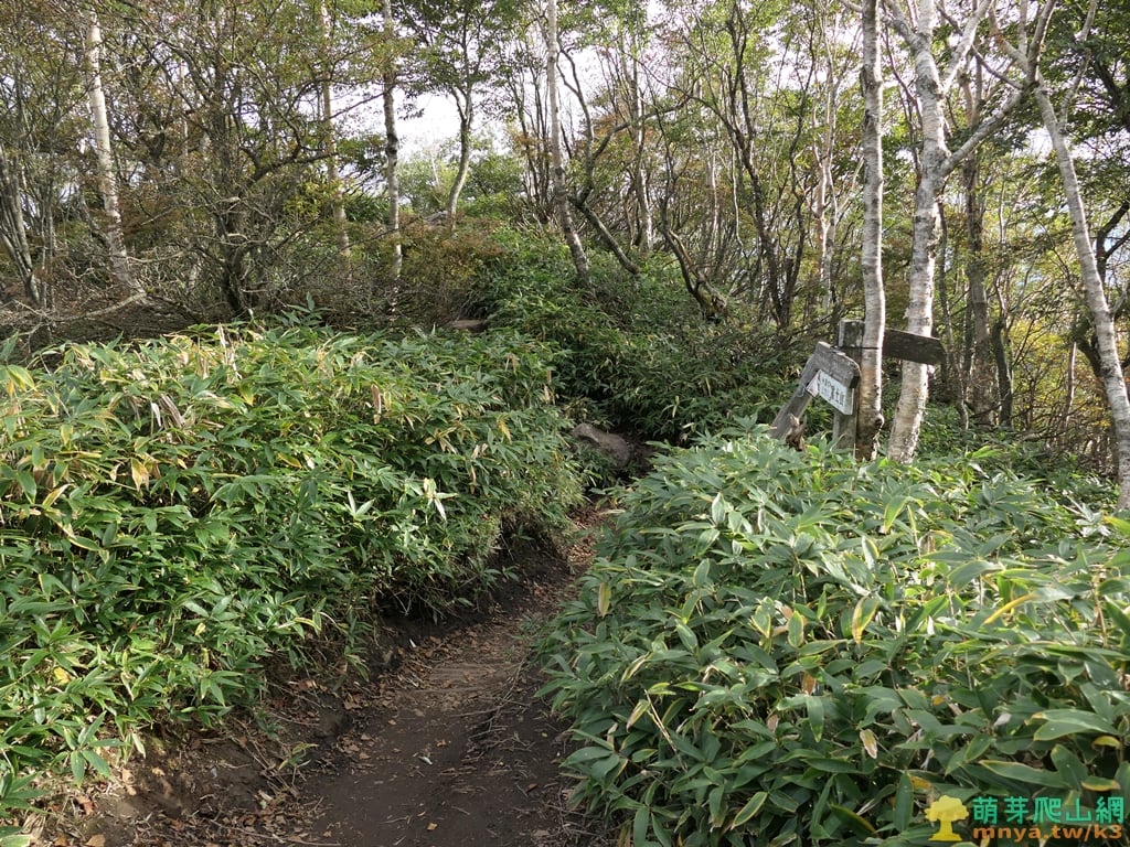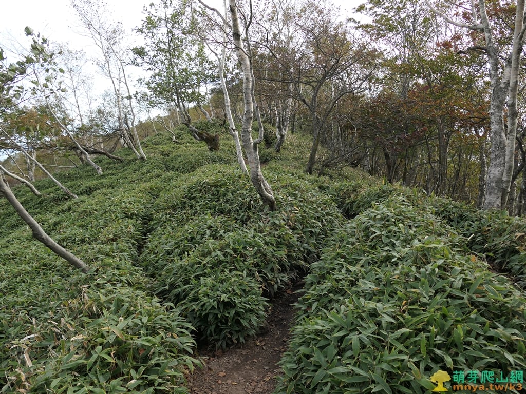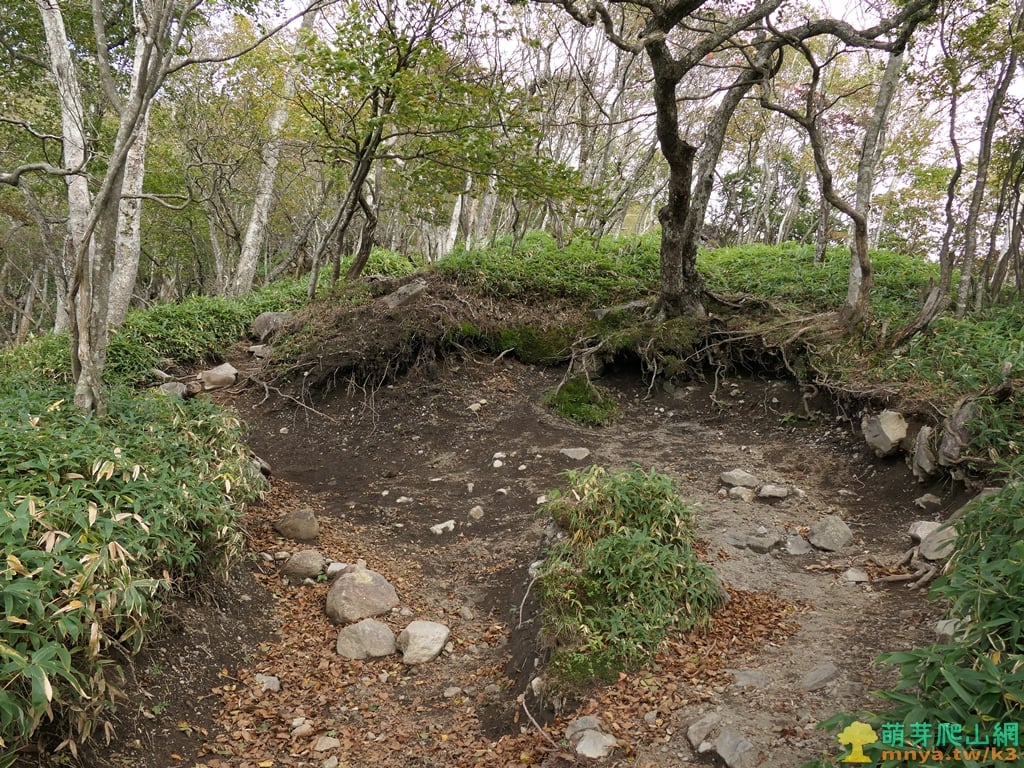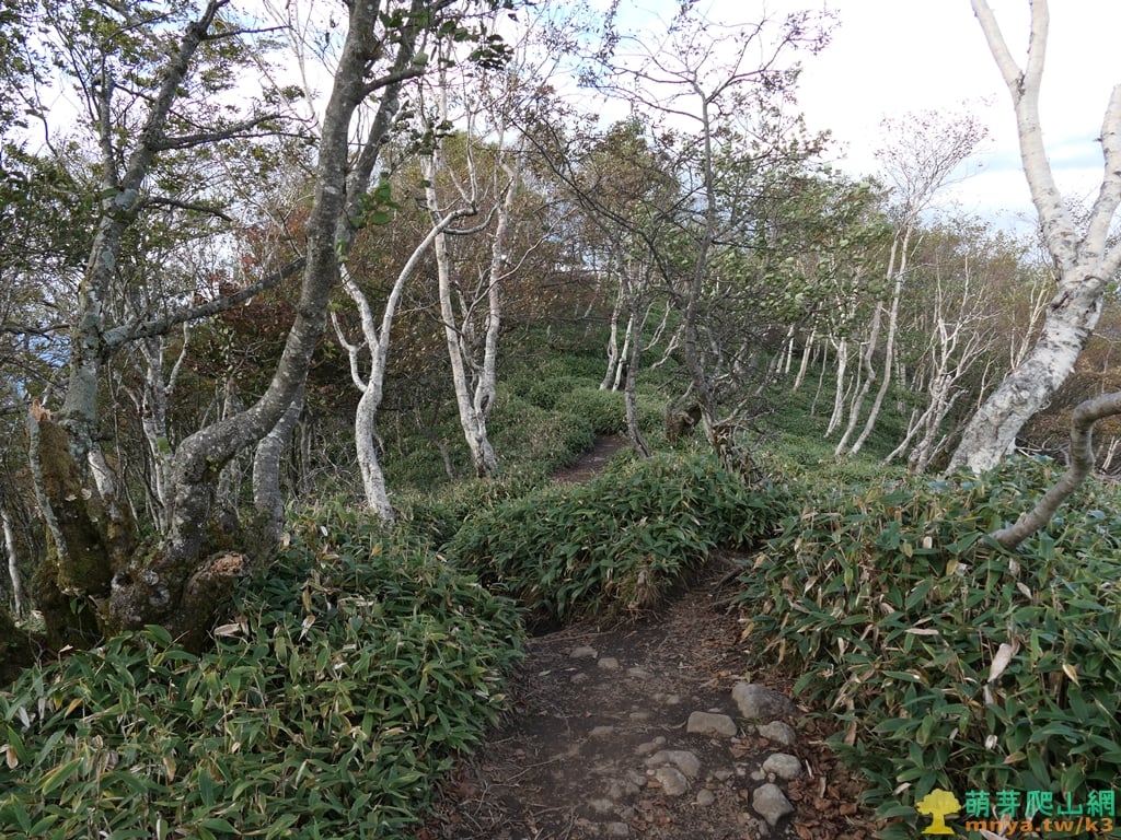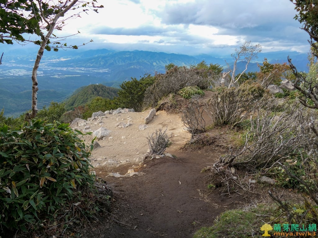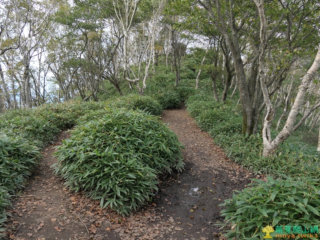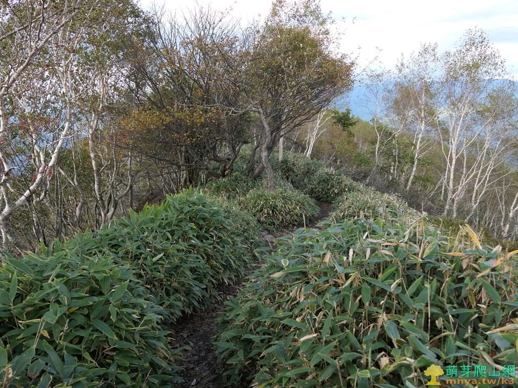 ▲通往絕景展望地的稜線平緩,路徑為緩下坡,稜線上的灌木樹葉都相對稀疏,有即將入冬的感覺。