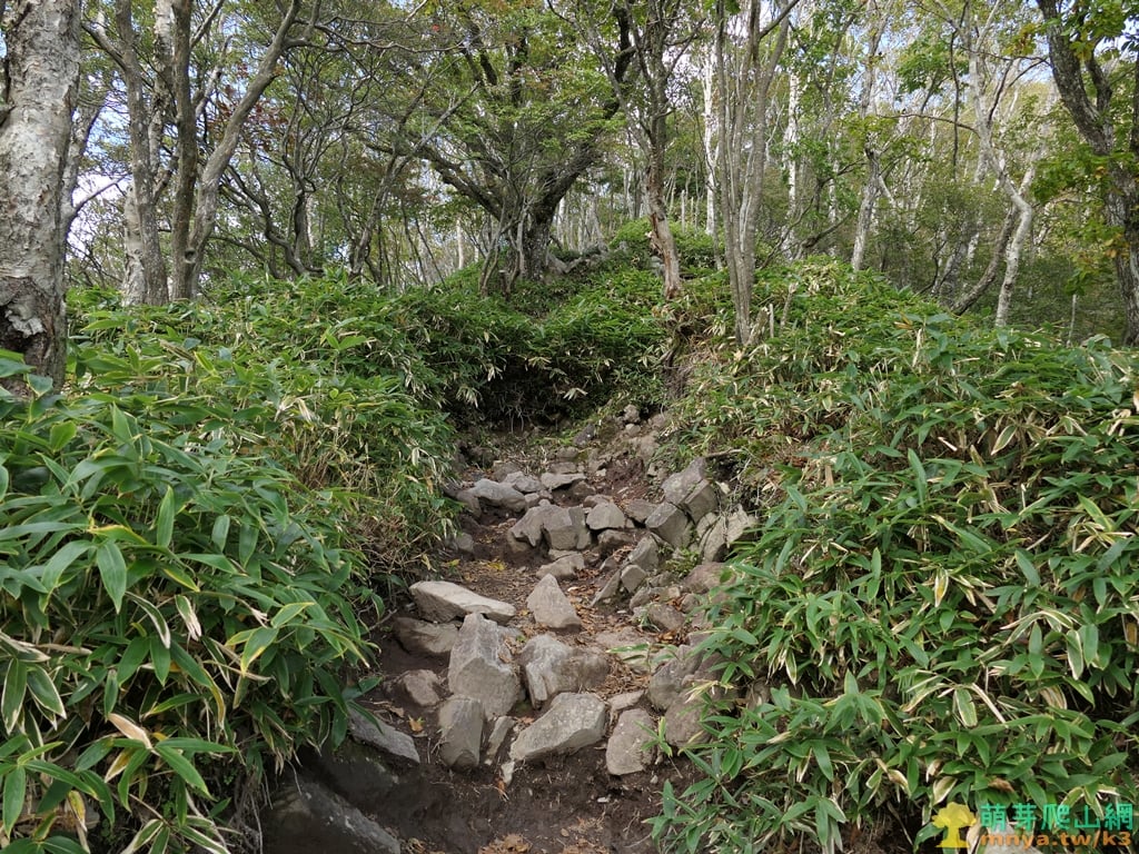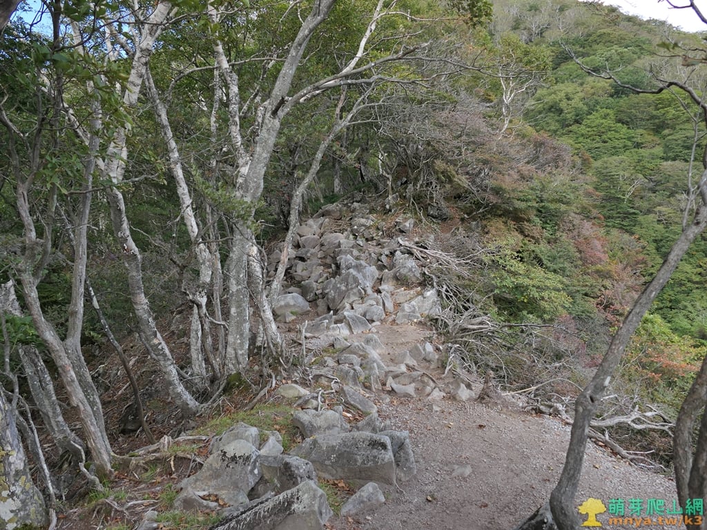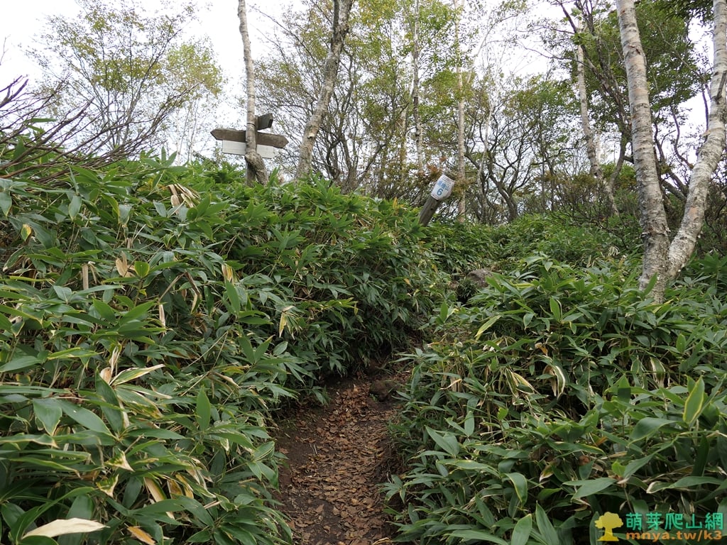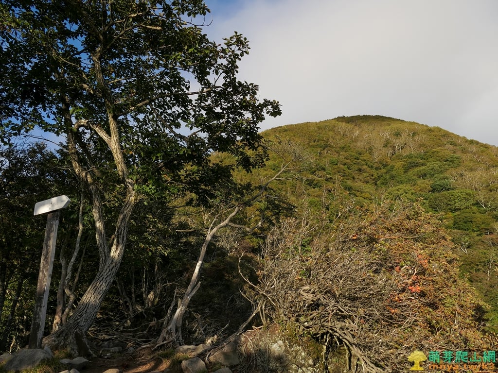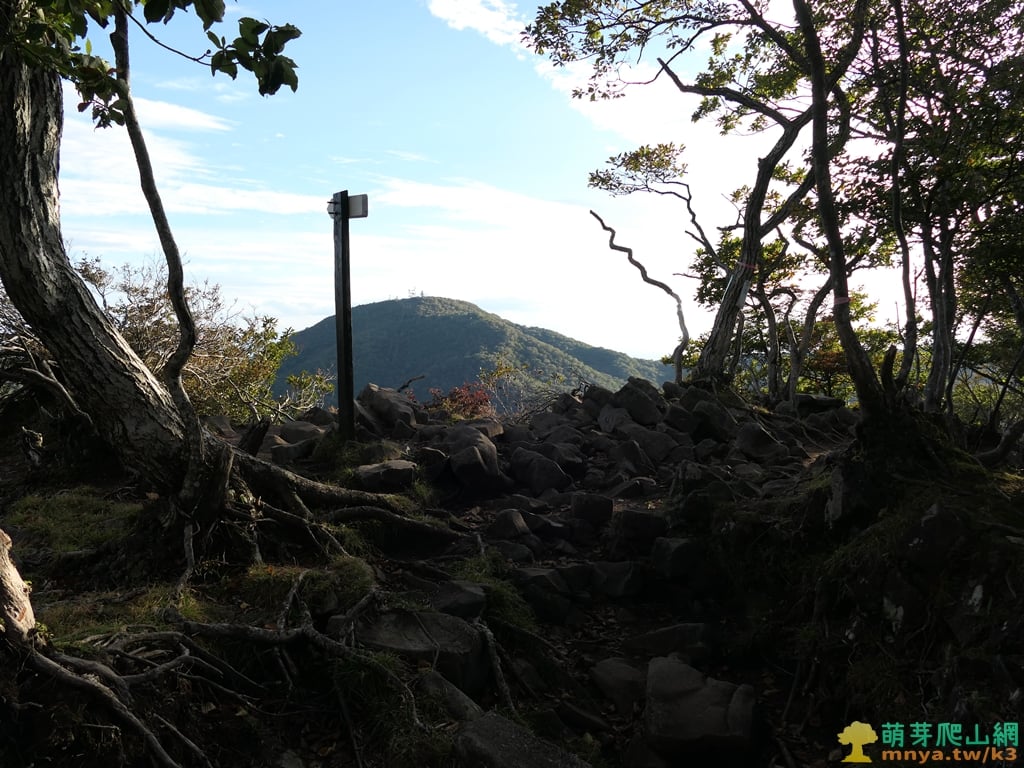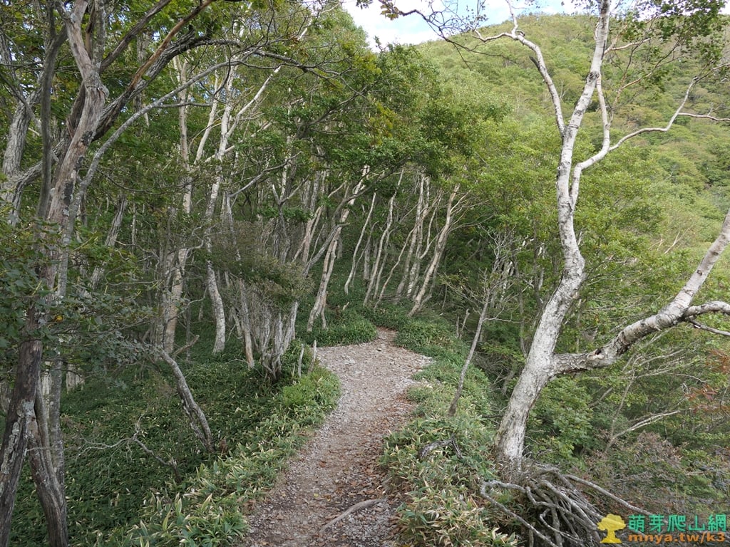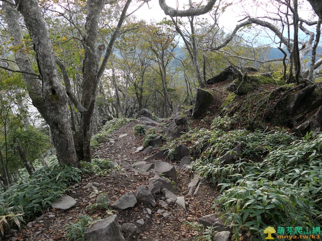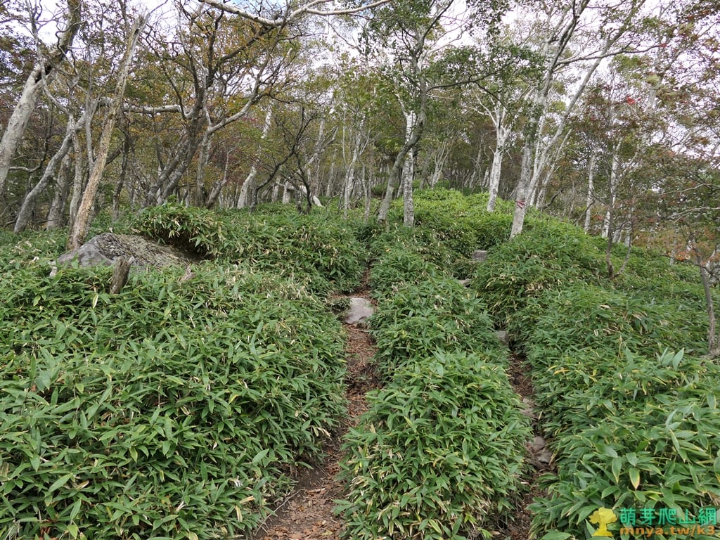 ▲通往絕景展望地的稜線平緩,路徑為緩下坡,稜線上的灌木樹葉都相對稀疏,有即將入冬的感覺。