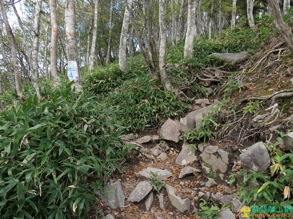 ▲16:11,回黒檜山4號防迷標誌,下山的途中還能享受到最後的陽光。