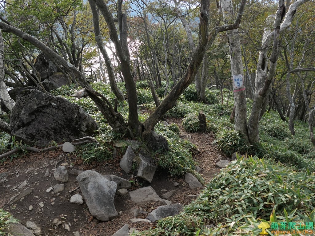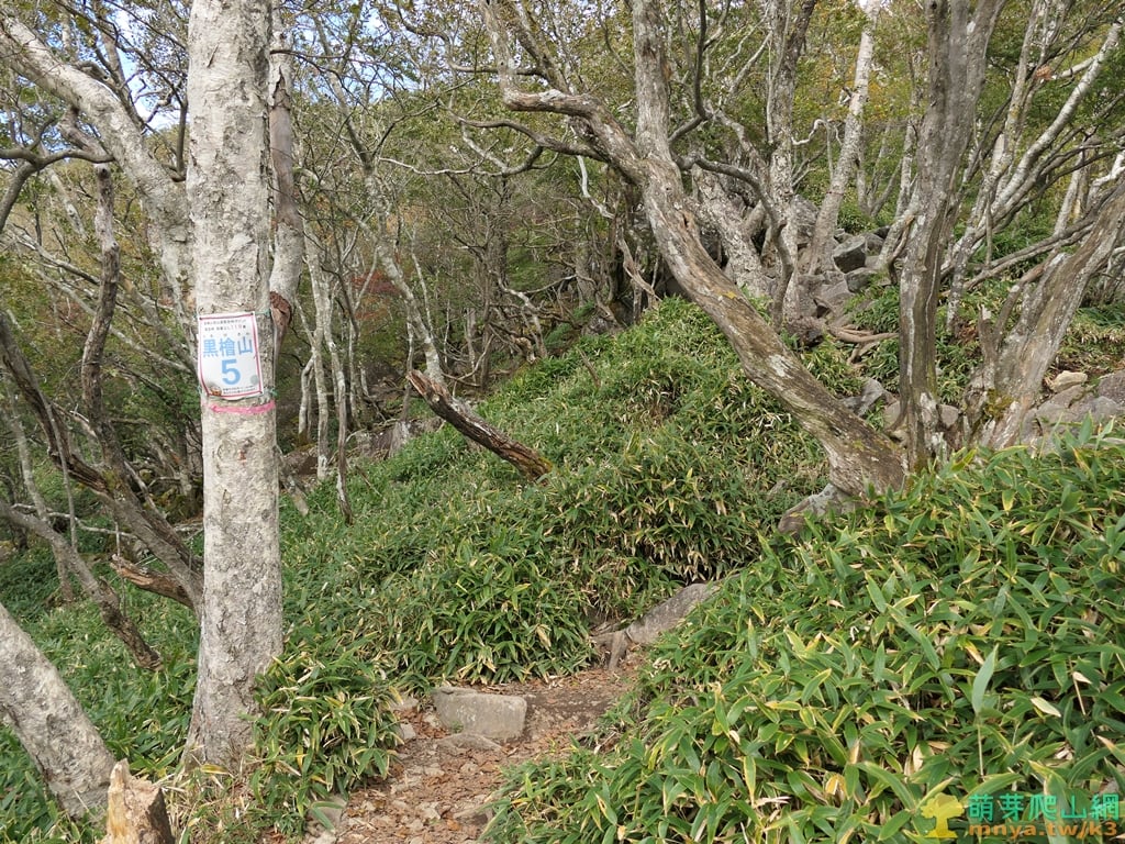 ▲15:01,上行經黒檜山5號防迷標誌,下一個編號就是稜線岔路了。