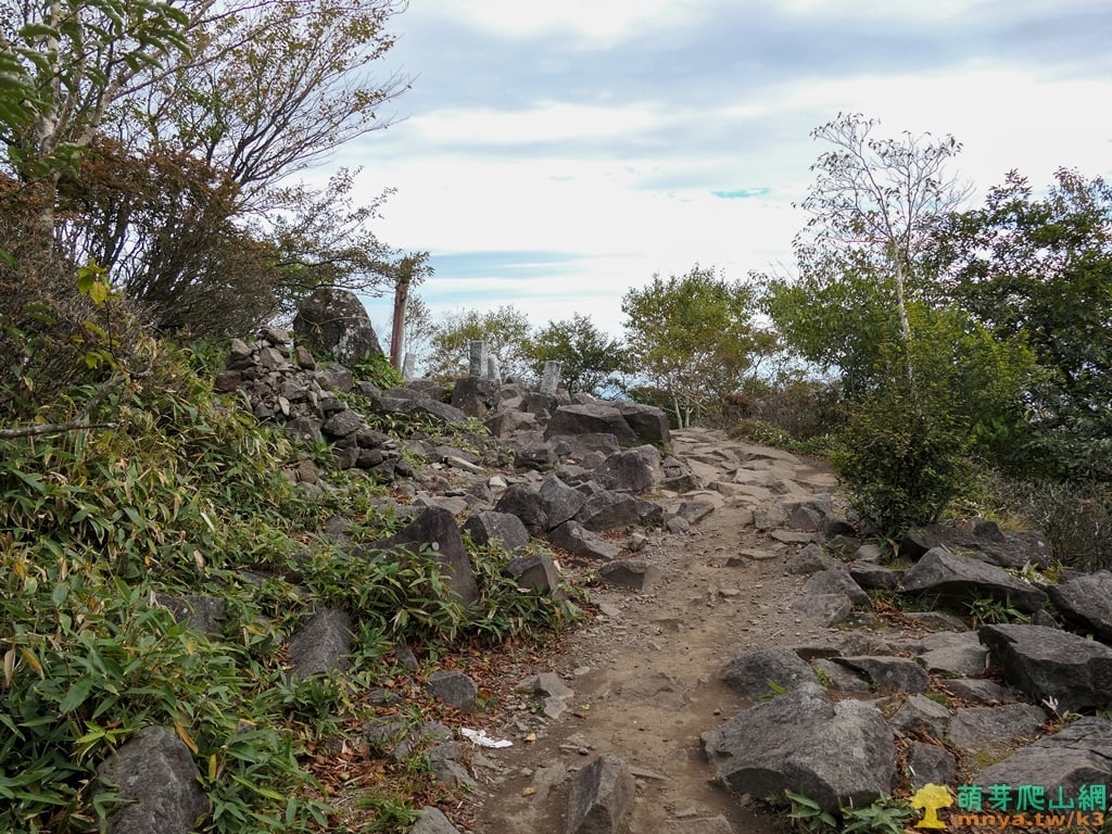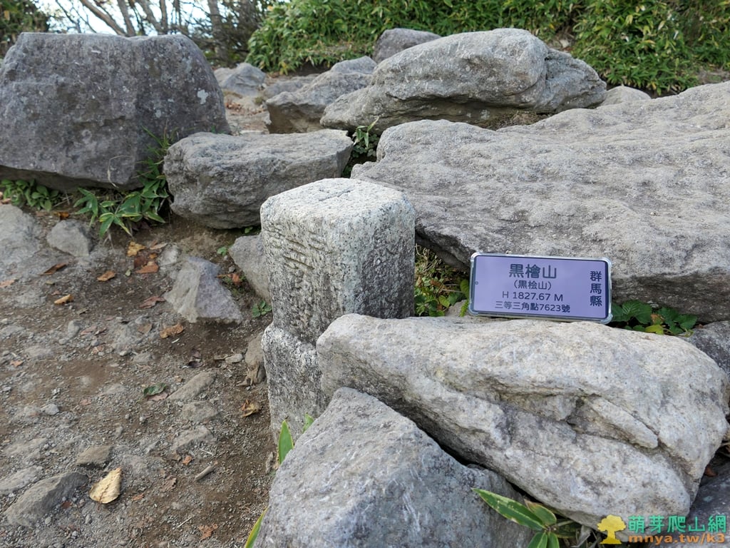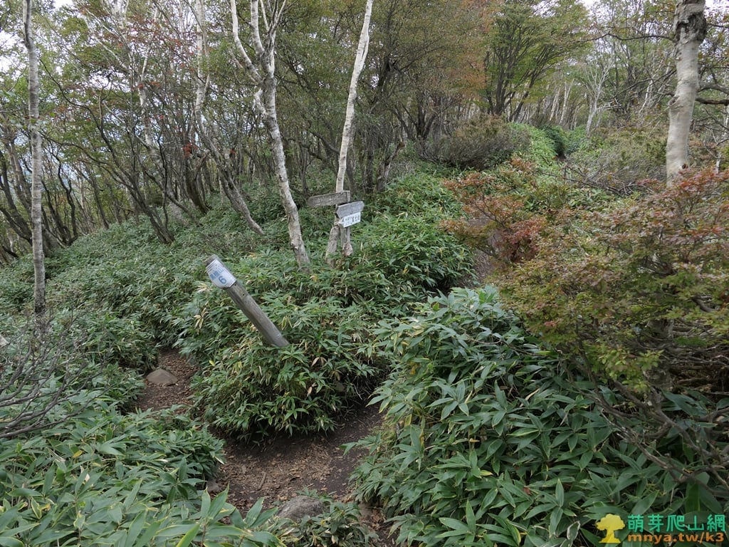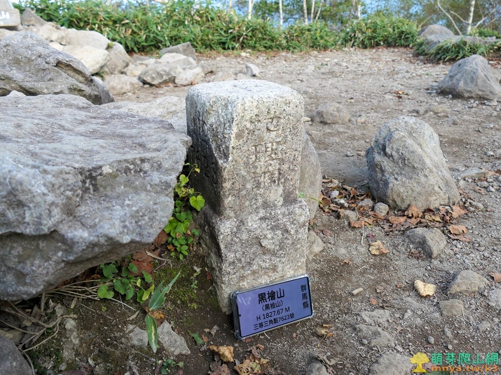 ▲黒檜山三角點與「赤城山黒檜山頂1828M」木牌,標誌續行向北可往絕景スポット(絕景展望點)約2分,風景非常好既然上山了就不要錯過。