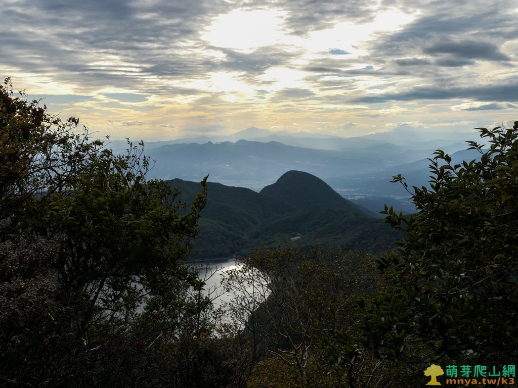 ▲沿途稜線左側展望,樹叢間能俯瞰大沼與鈴ヶ岳(1565M),遠遠遙望榛名山、浅間山、四阿山等地,再往前到絕景展望地風景會更好。