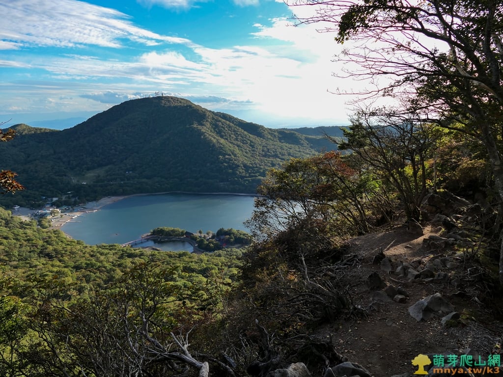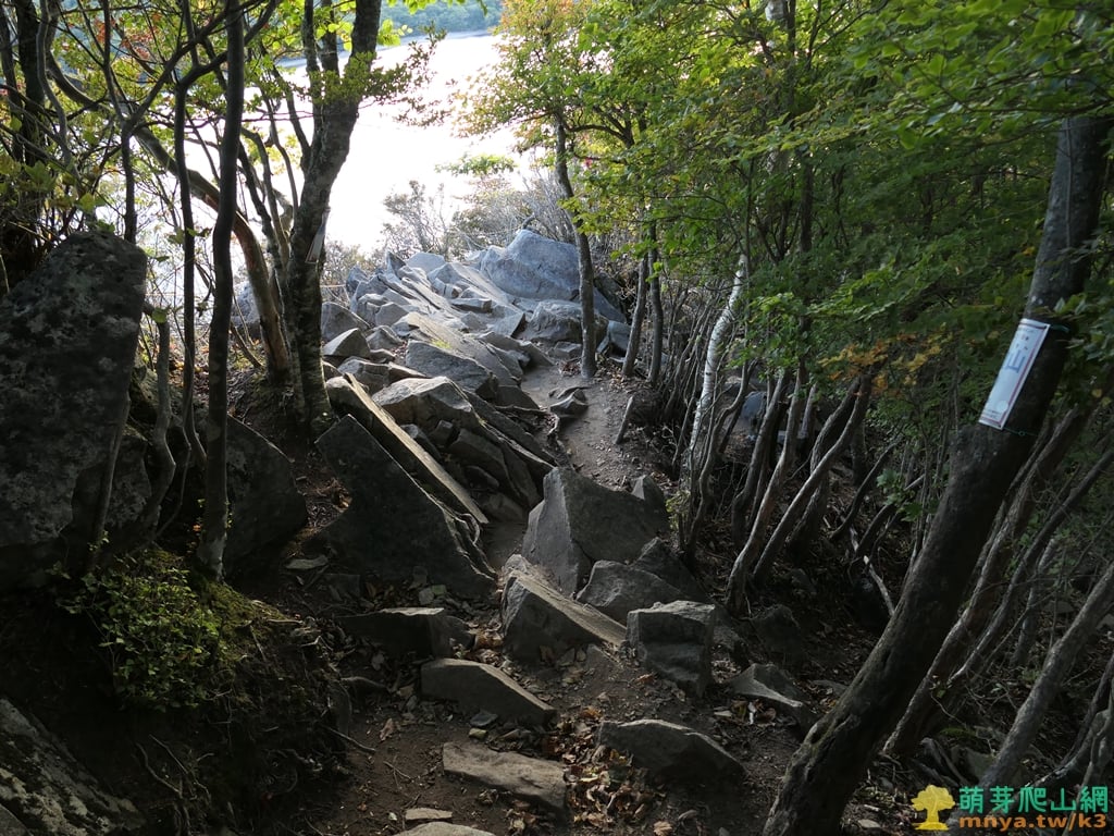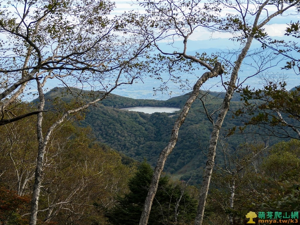 ▲下山途中左側樹林間,可俯瞰赤城小沼與長七郎山(1579M;三等三角點),全程只在此處能看見小沼的湖面。