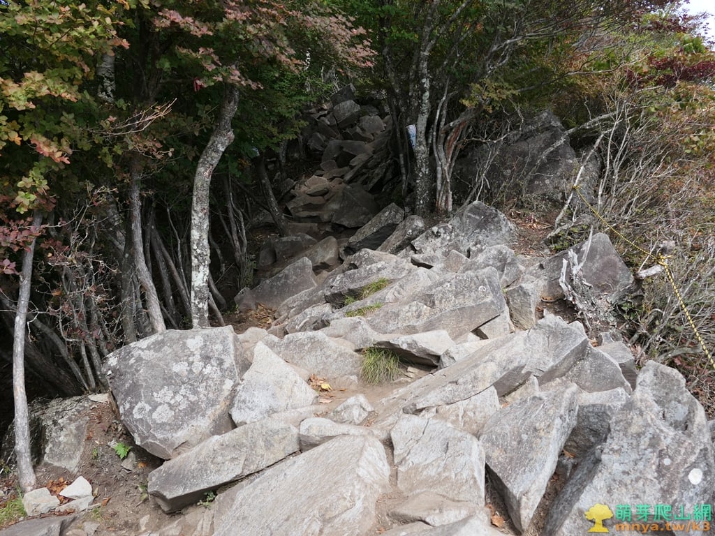 ▲一起步便是險升坡,路徑上岩石錯落路徑崎嶇,踏穩步伐慢慢向上。