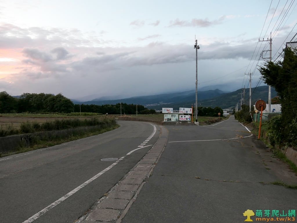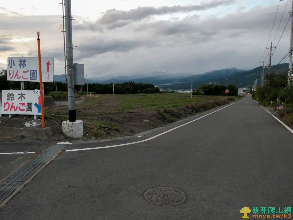 ▲順著群馬県道251号沼田赤城線下山來到利根町二本松地區附近,於一處Y字岔路口旁停車,路口有直往小林りんご園、鈴木りんご園的指標。
