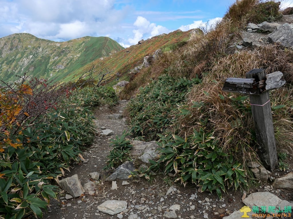 ▲11:06,由谷川岳(トマの耳)前分岔續行向北的山徑步道往谷川岳(オキの耳),直距オキの耳約0.29K,為先下再上的雙峰稜線地形。