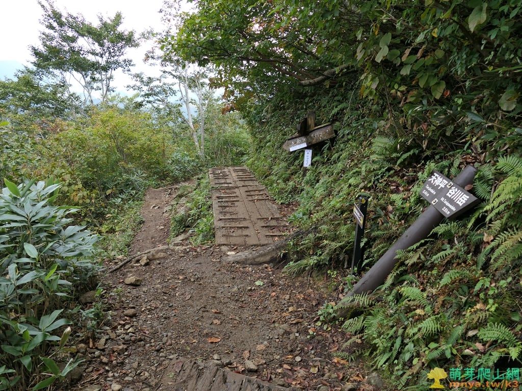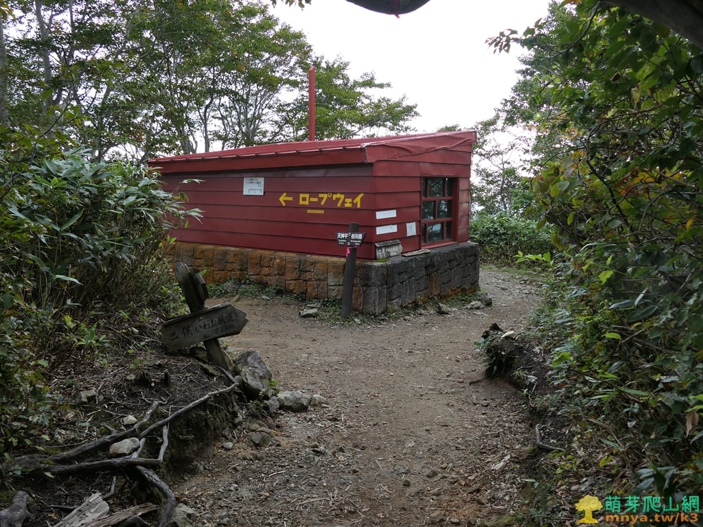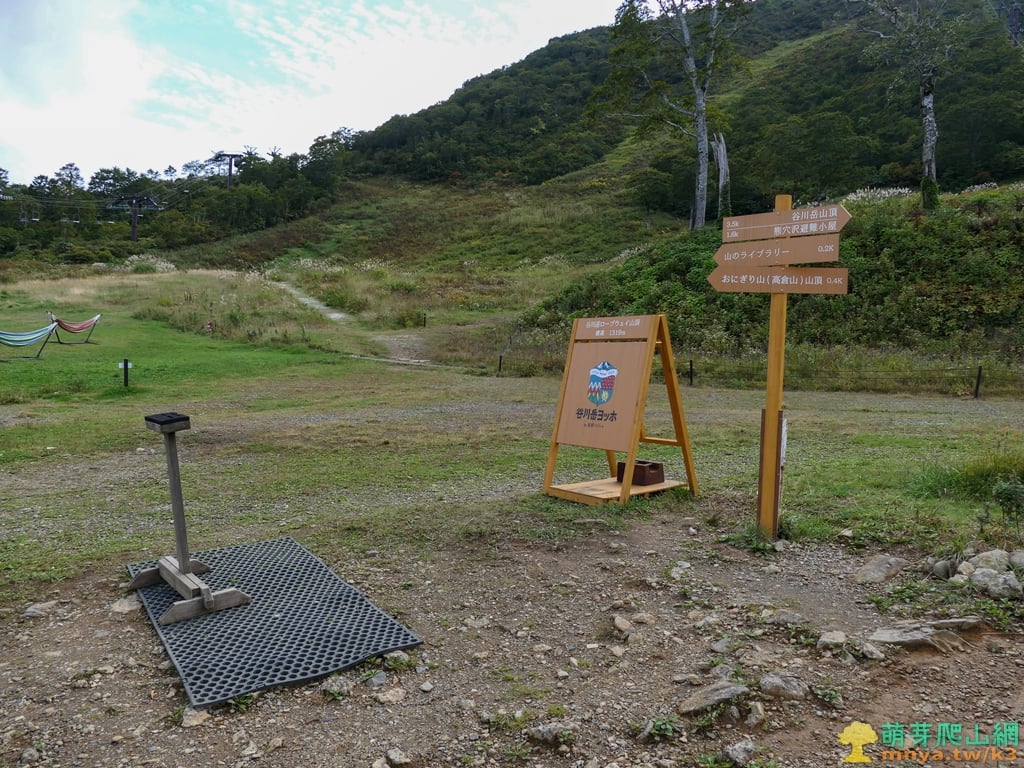 ▲天神平站前方岔路指標,對著牌子方向右往谷川岳山頂3.5K、熊穴沢避難小屋1.6K;左往山のライブラリー(山的圖書館)0.2K、おにぎり山(高倉山)山頂0.4K,高倉山有一顆三等三角點保登野,非今日目標就略過了。