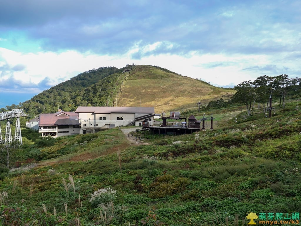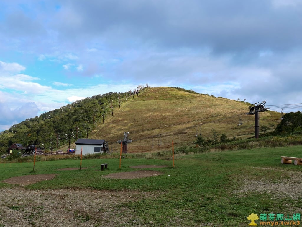 ▲往東看草坡左側為高倉山第一リフト(長405公尺)、高倉山第二リフト(長346公尺),右前方為天神平リフト(長256公尺),這三座纜椅線雪季時才會運行。(リフト=空中纜椅)