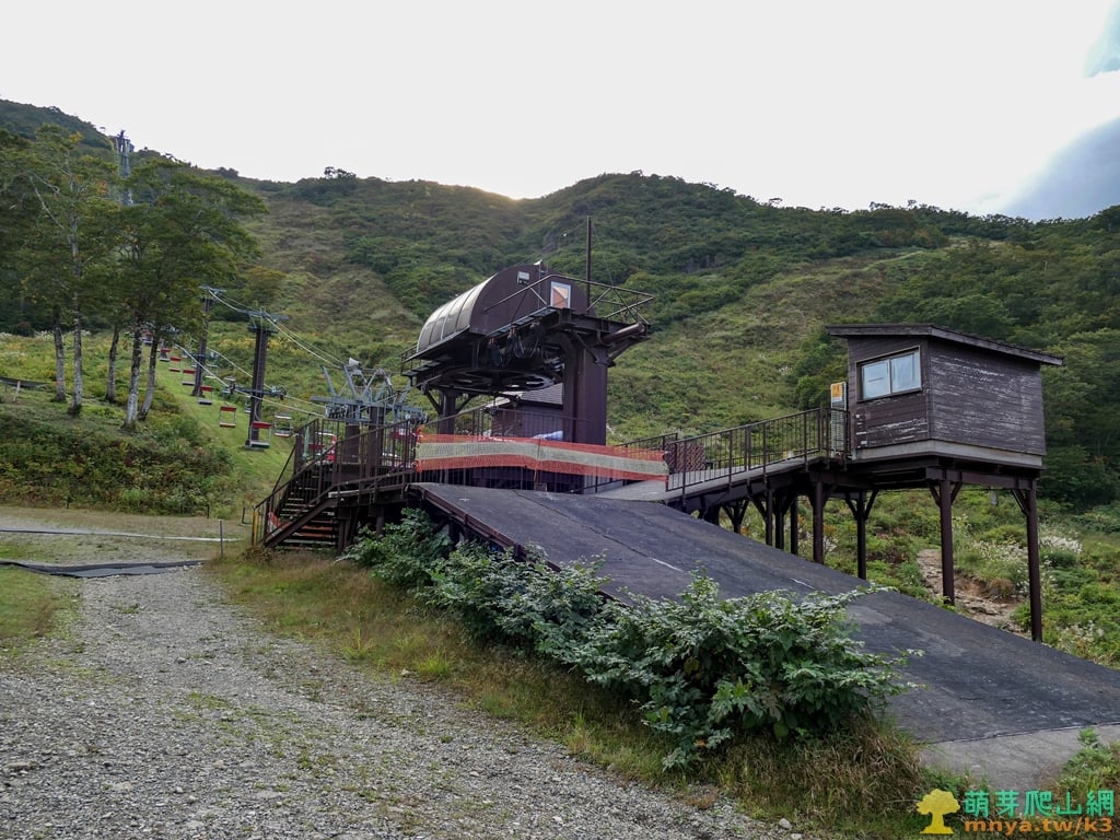 ▲天神峠ペアリフト(天神峠空中纜椅)天神平站搭乘點,連接上方的天神峠(1502M),全長428公尺,高低差168公尺。