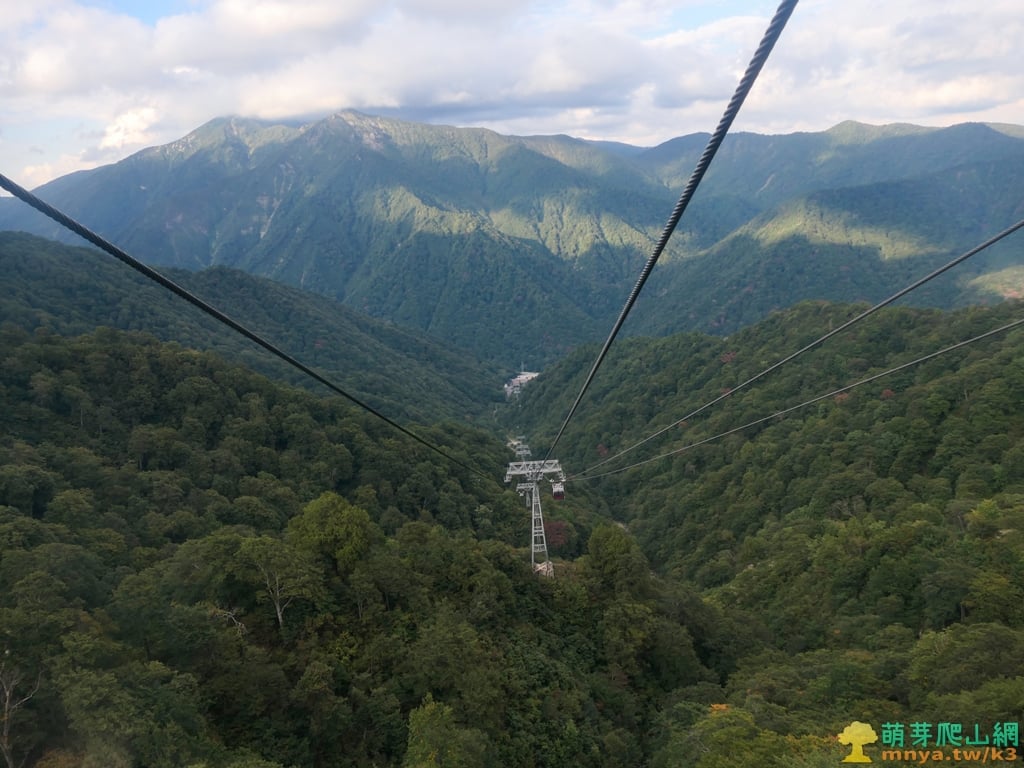▲搭上纜車下行回往土合口駅,俯瞰湯檜曽川山谷,與對面的白毛門(1720M)山稜,山間仍透出一點陽光。