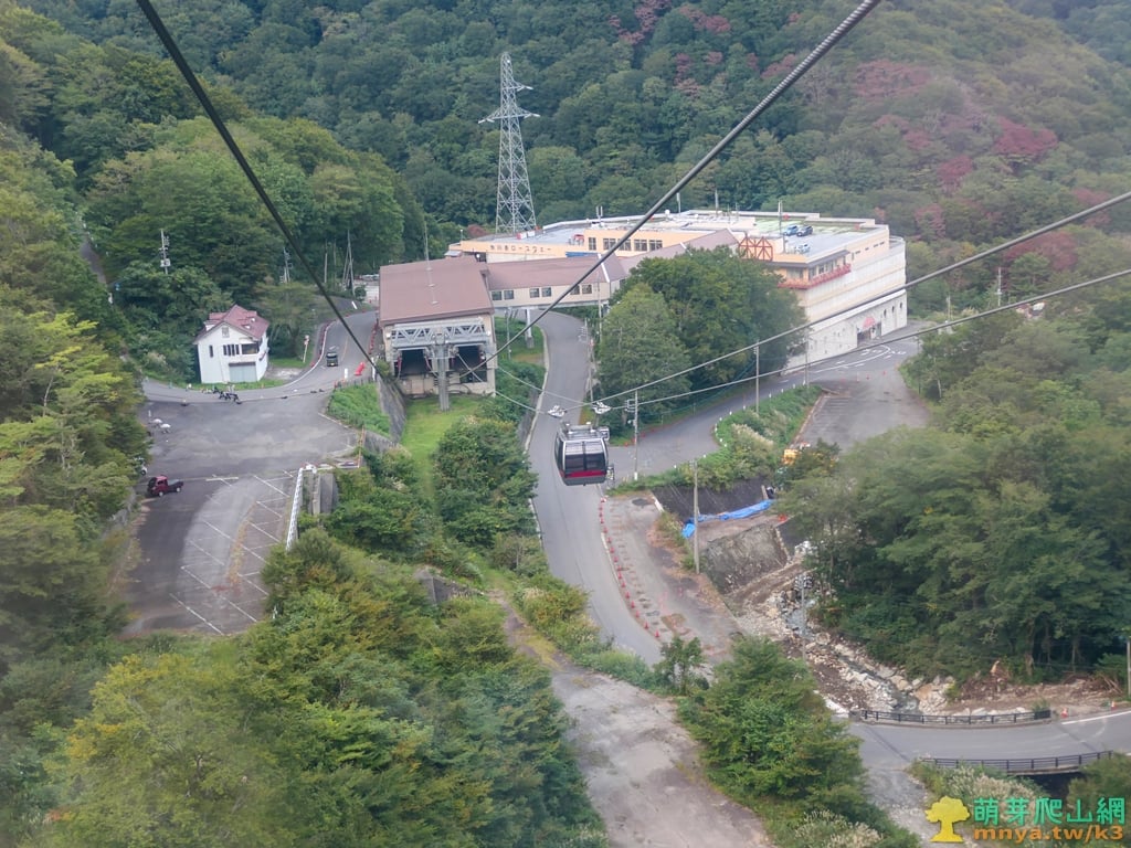 ▲從纜車上俯瞰土合口駅,下方的国道291号於左側彎道通行止,續行往一ノ倉沢方向車輛禁入,左側還有一間谷川岳山岳資料館但鐵門關著沒開。