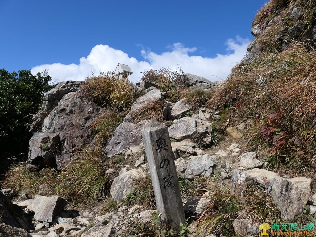 ▲11:18,陡上抵達谷川岳(オキの耳)山頂,此處是谷川岳二耳山的最高點,「オキ」意為遠處、內部,從トマノ耳(1963M)走來約12分鐘,從天神平纜車站走來總費時2小時24分鐘。