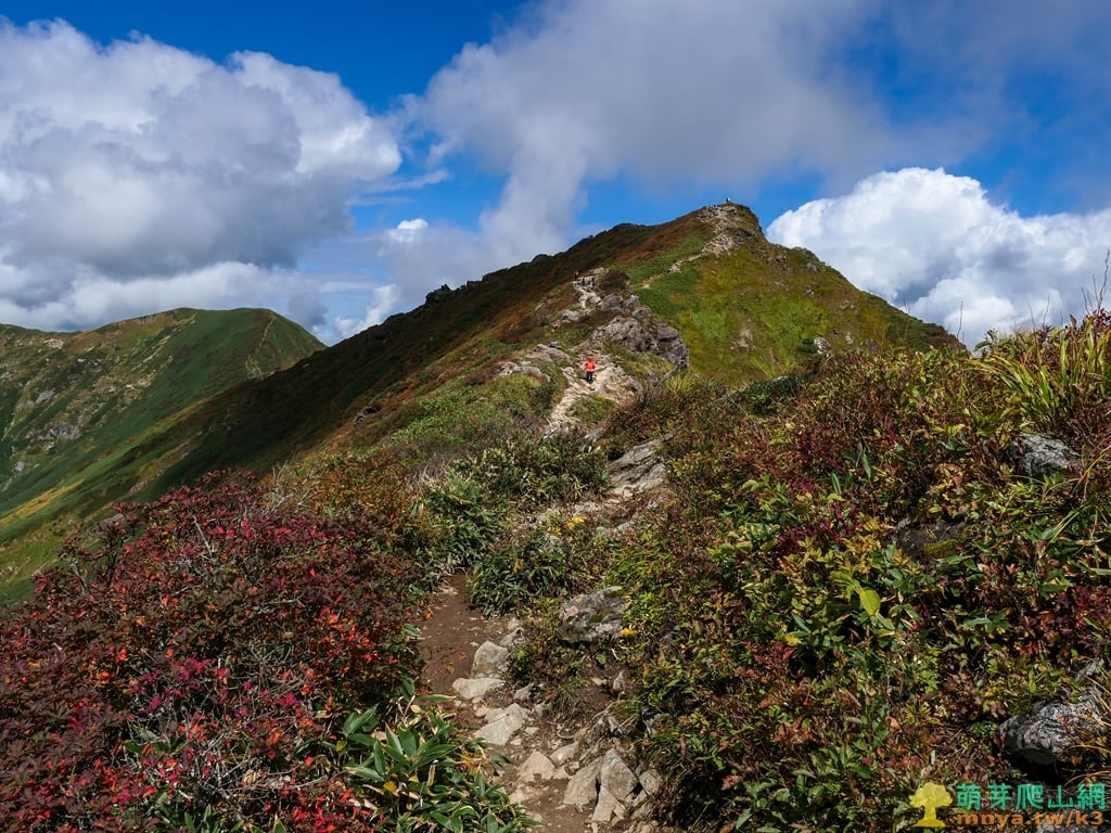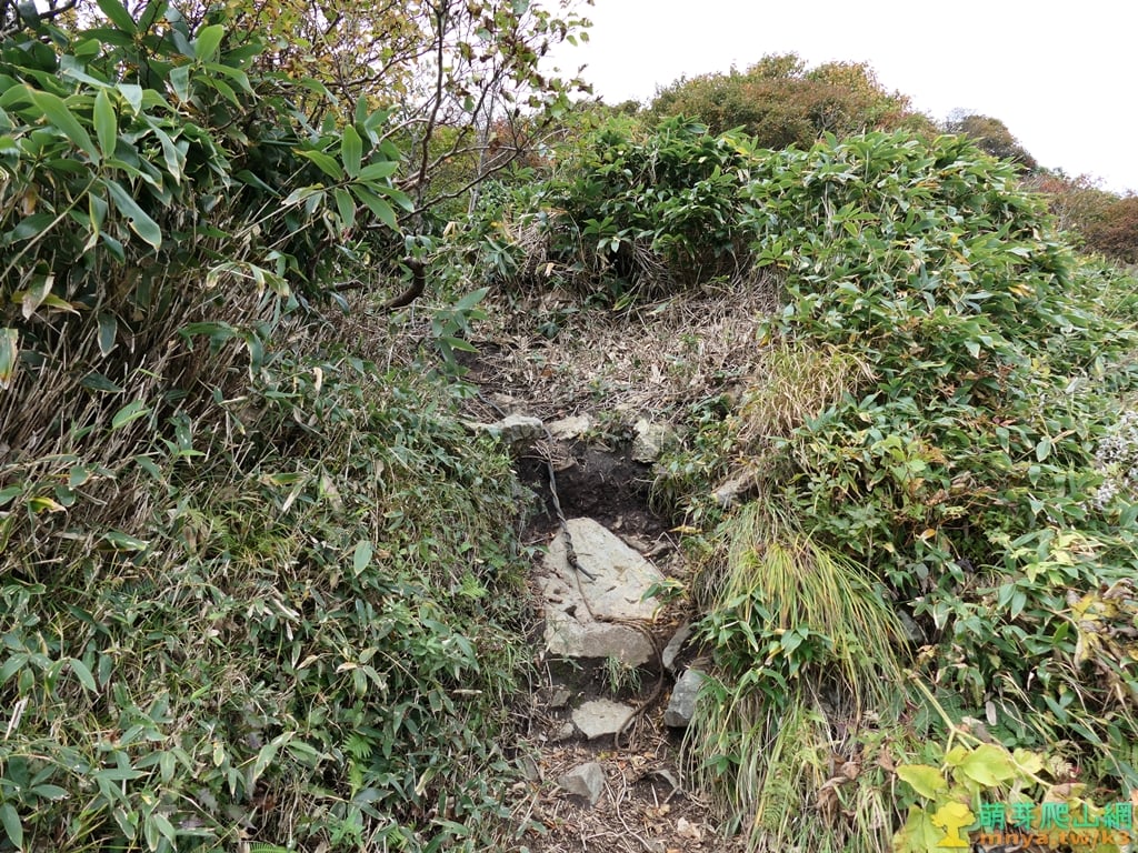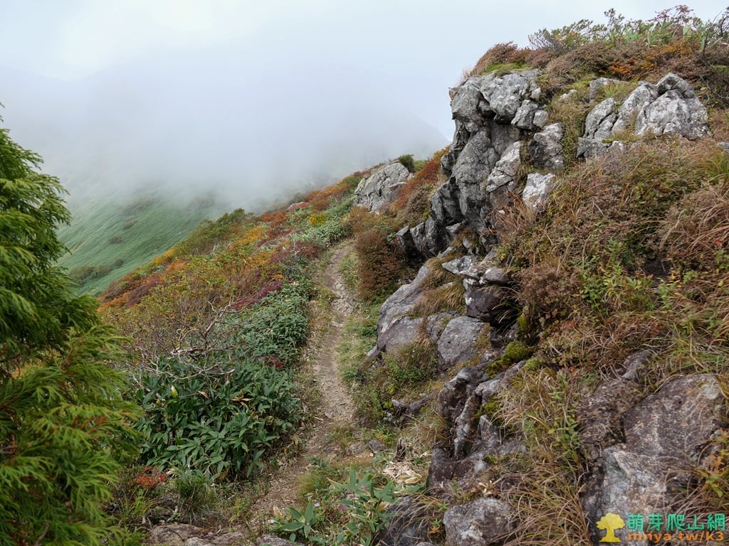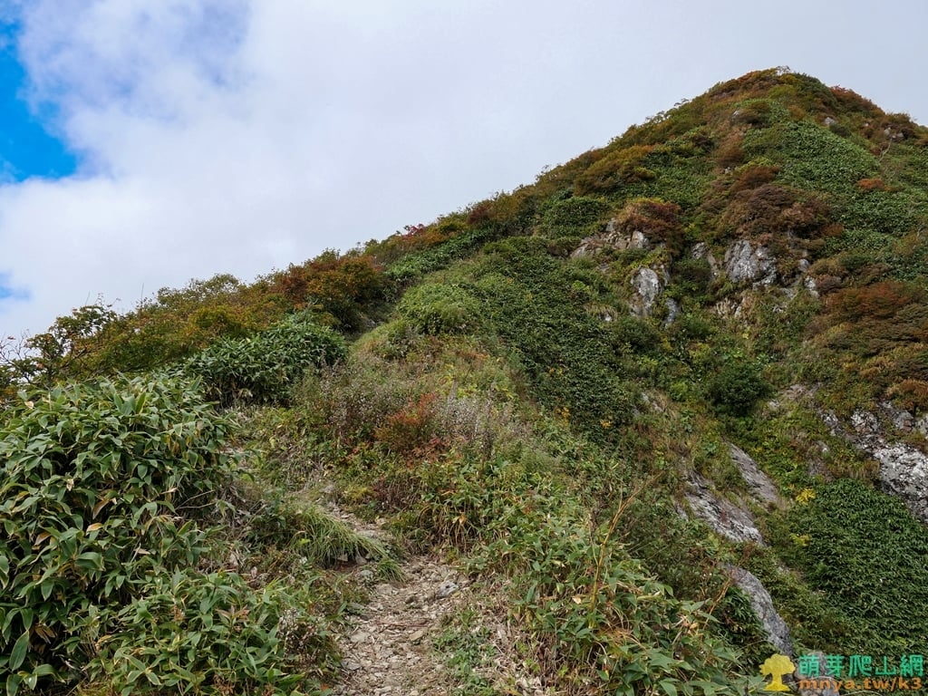 ▲繞過稜線上的巨石後轉陡上坡,是通向谷川岳(オキの耳)前的最後一段路。