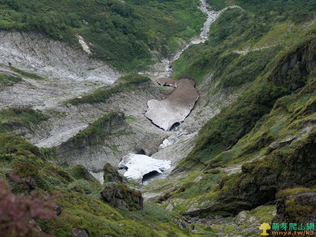 ▲從稜邊俯瞰一ノ倉沢,峭壁下的山溝還有永凍的冰河。